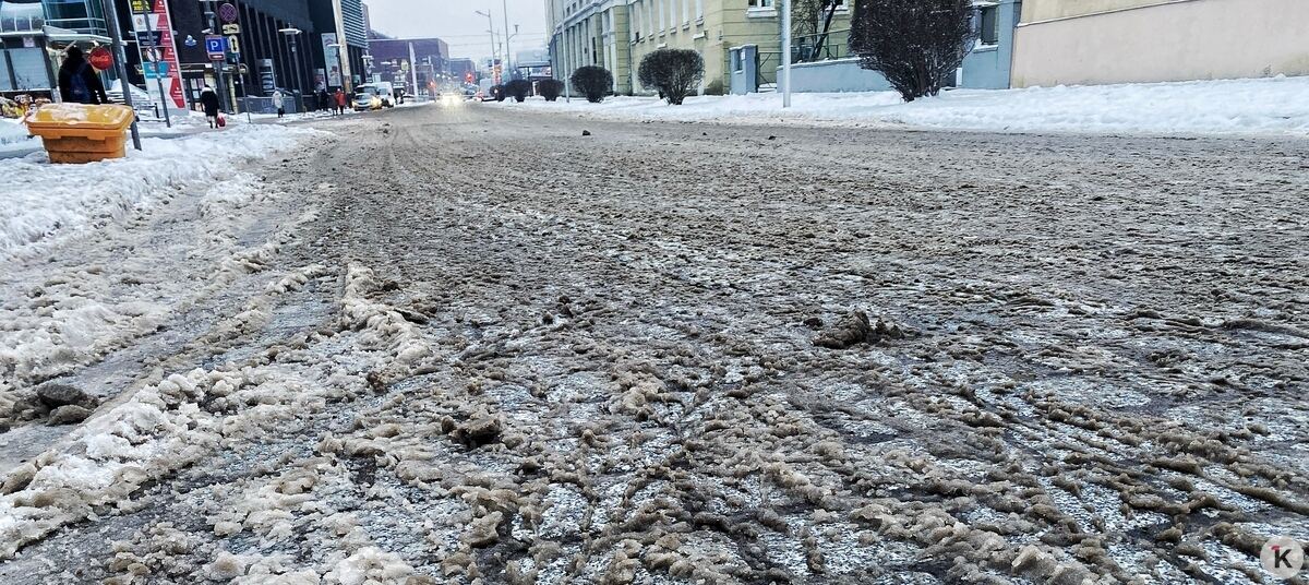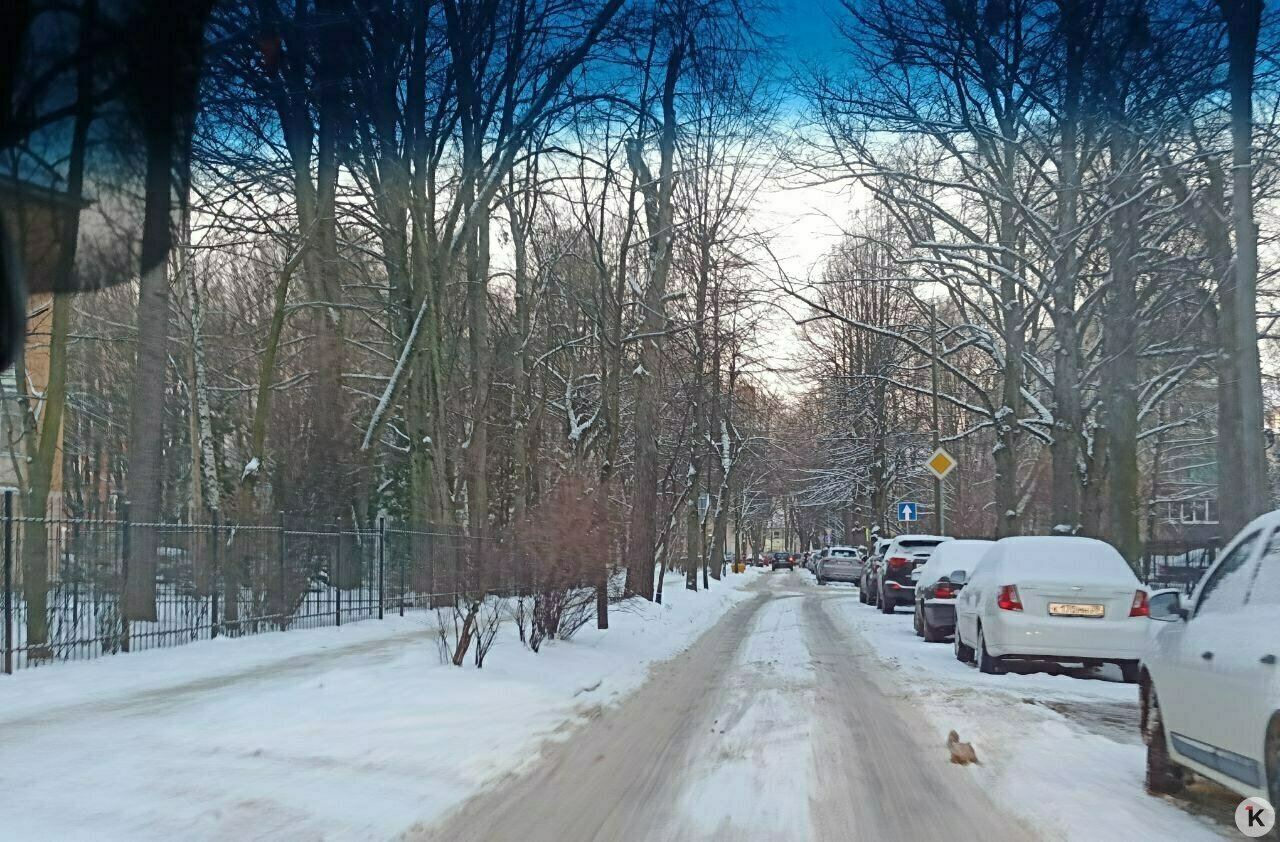 Калининградец Павел в заснеженную погоду чуть не угодил в ДТП, когда ехал по только что отремонтированной Красной.