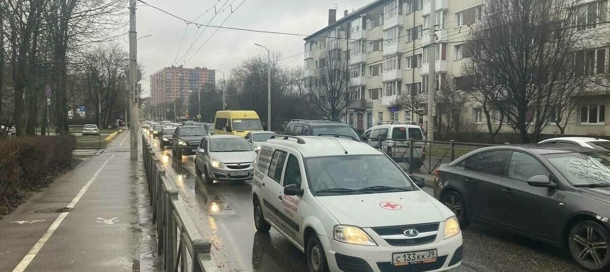 В Калининграде ул. Горького днём во вторник, 21 февраля, встала в километровой пробке. Об этом «Клопс» сообщил очевидец, информацию подтверждают данные сервиса «Яндекс. Карты».
