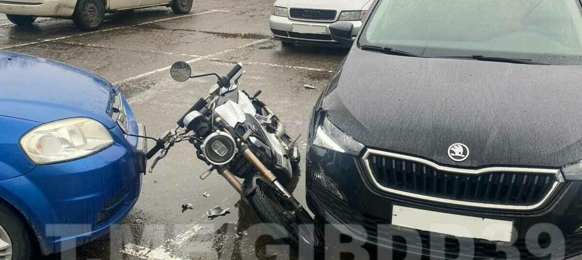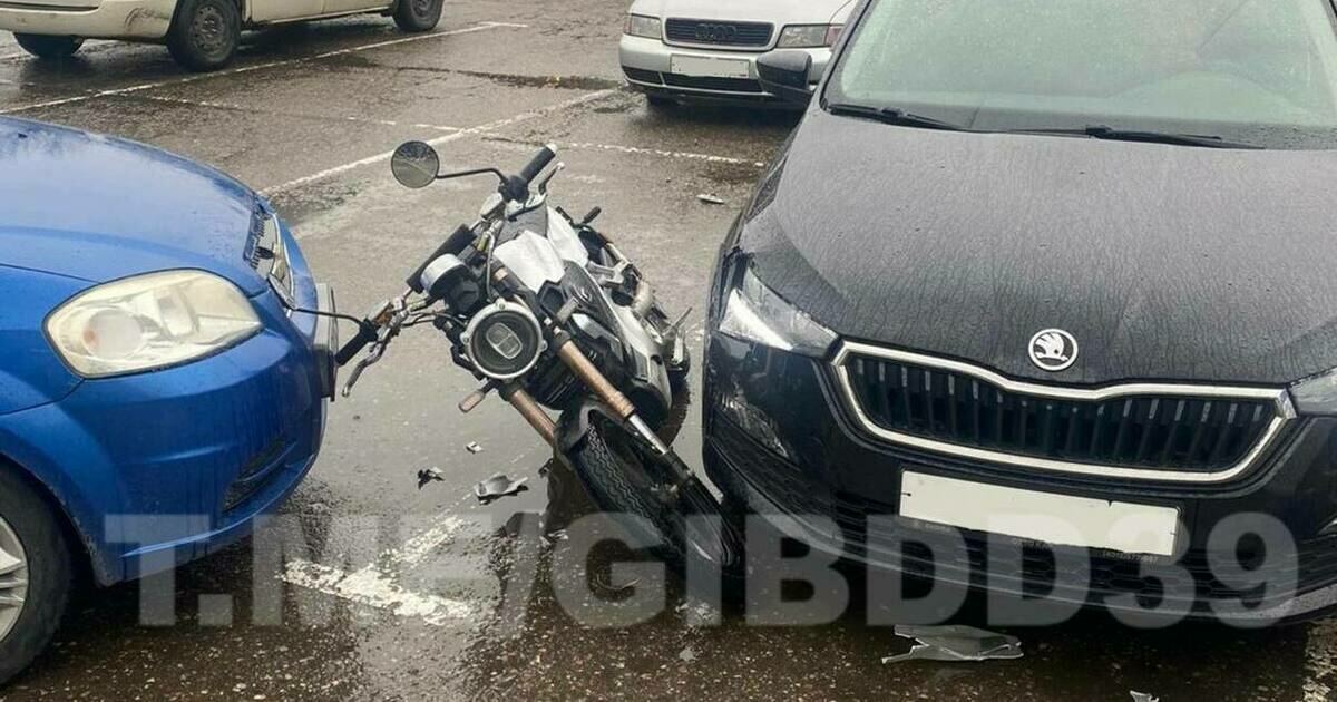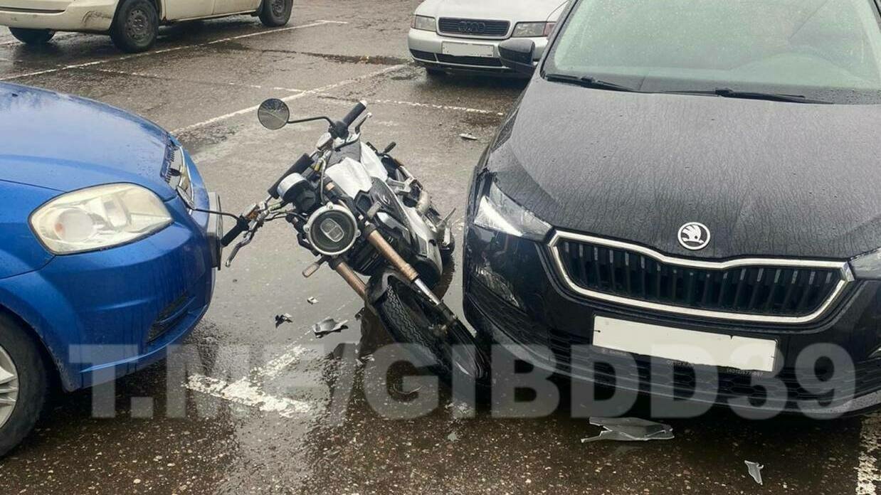 В Калининграде Chevrolet лихо выезжал с парковки и отбросила мотоциклиста на припаркованную Škoda. Об этом сообщает пресс-служба регионального УМВД.