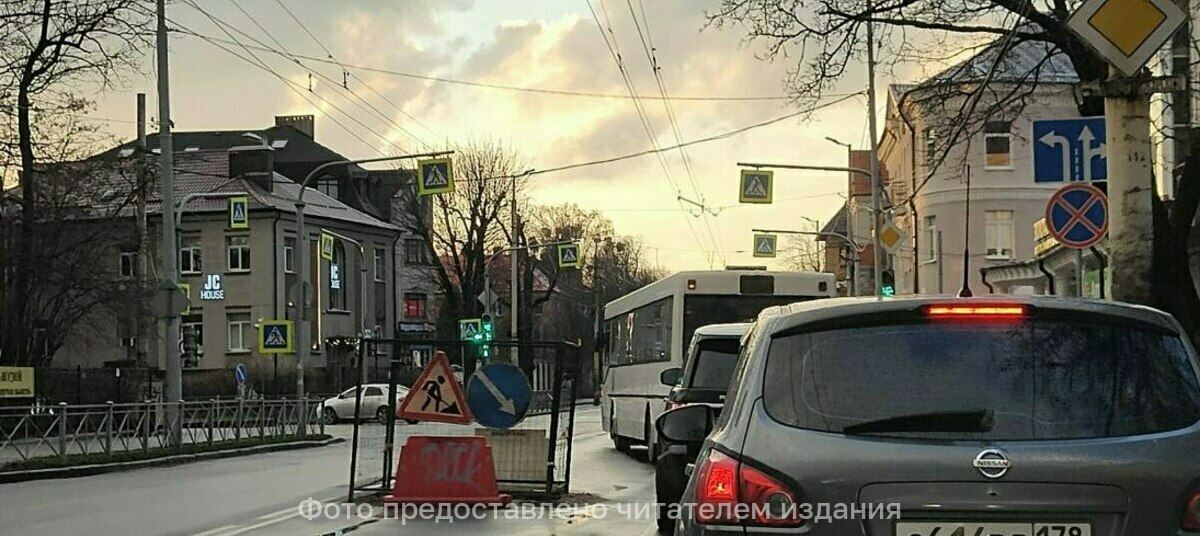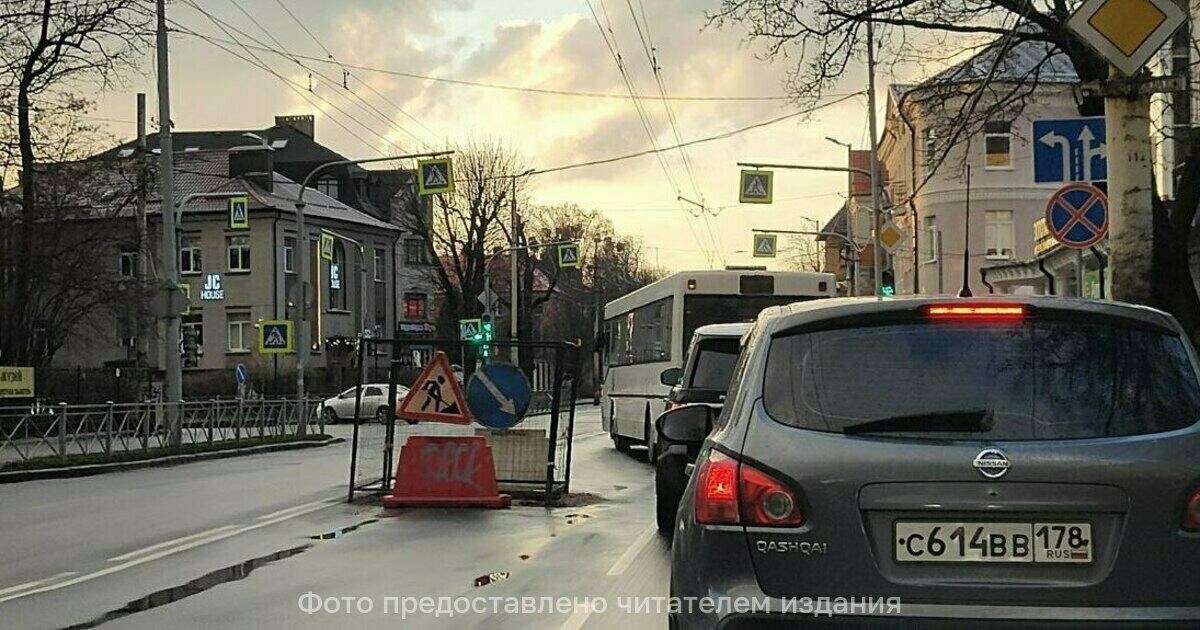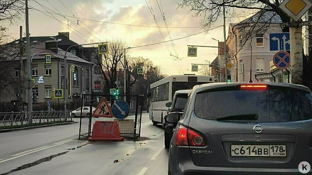 В Калининграде на проспекте Мира несколько дней не закапывают яму посреди проезжей части. Работ не видно, а пробки образуются, рассказали «Клопс» местные жители.