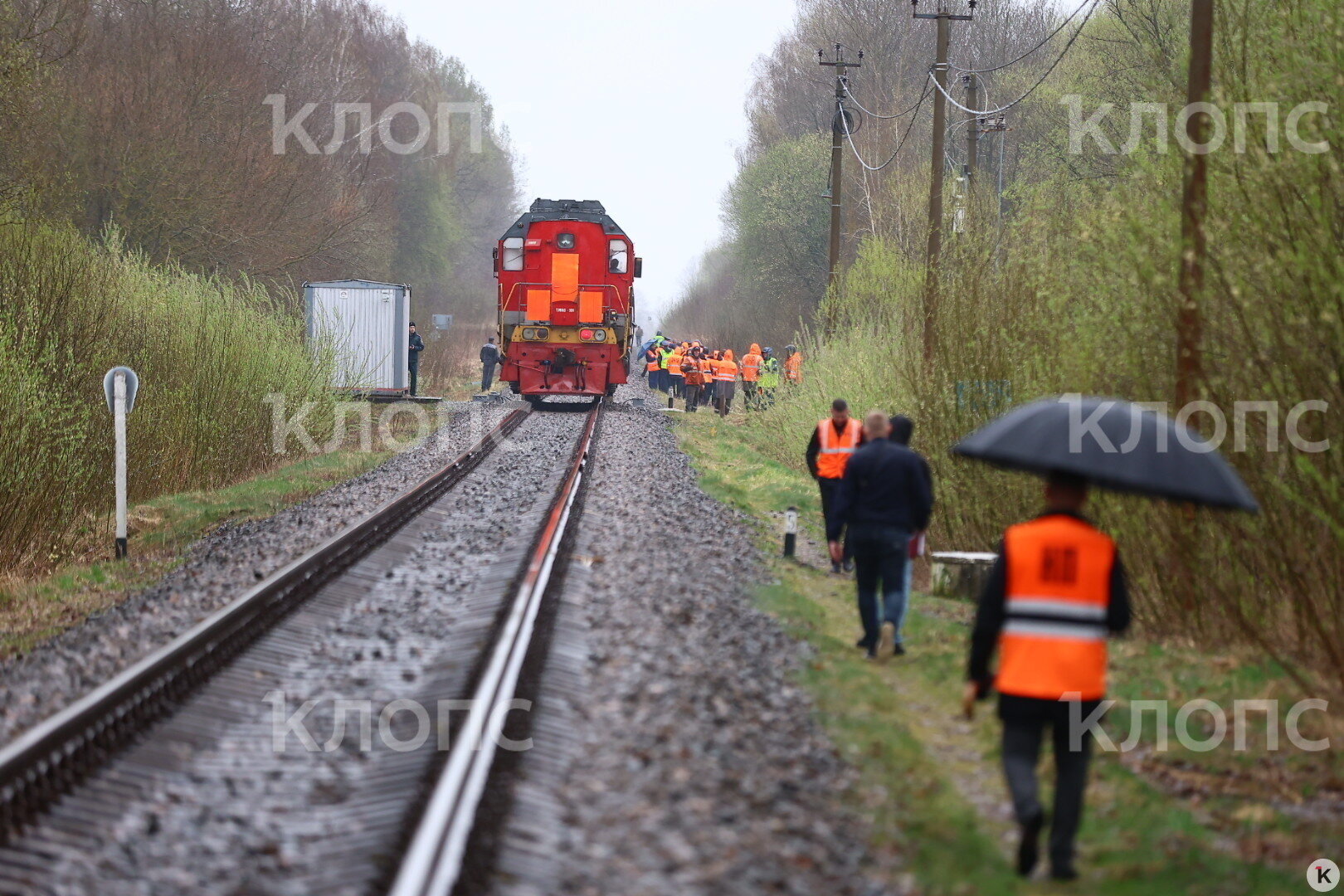 У поезда, сошедшего с рельсов на перегоне Полесск — Гурьевск, работают кинологи. Фотокоррпеспондент «Клопс» побывал на месте ЧП.