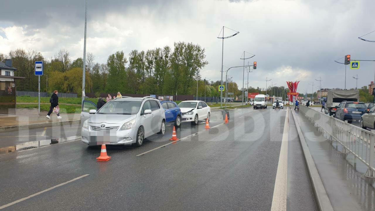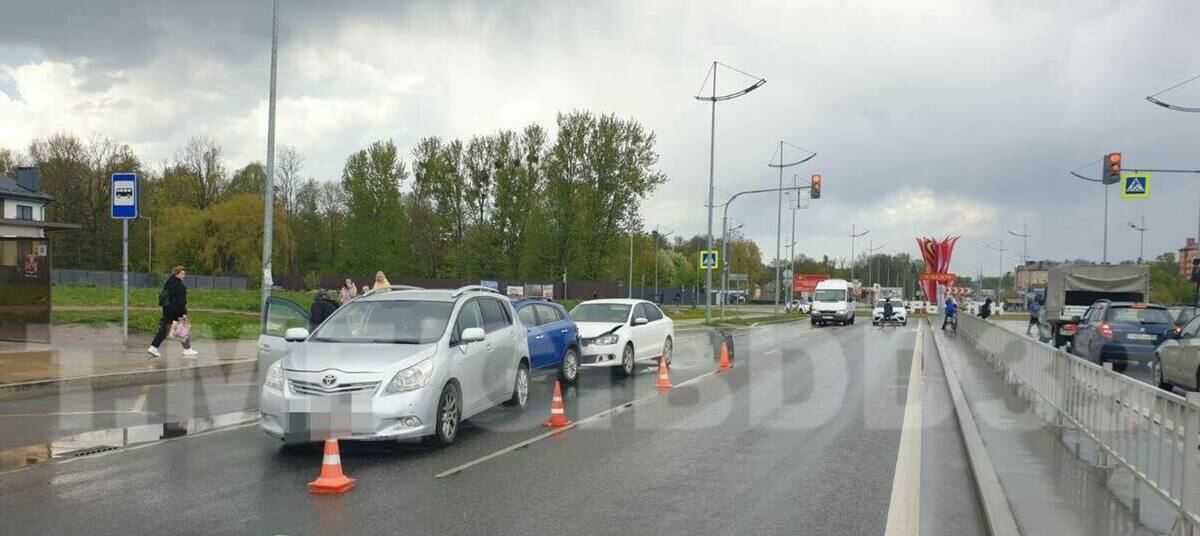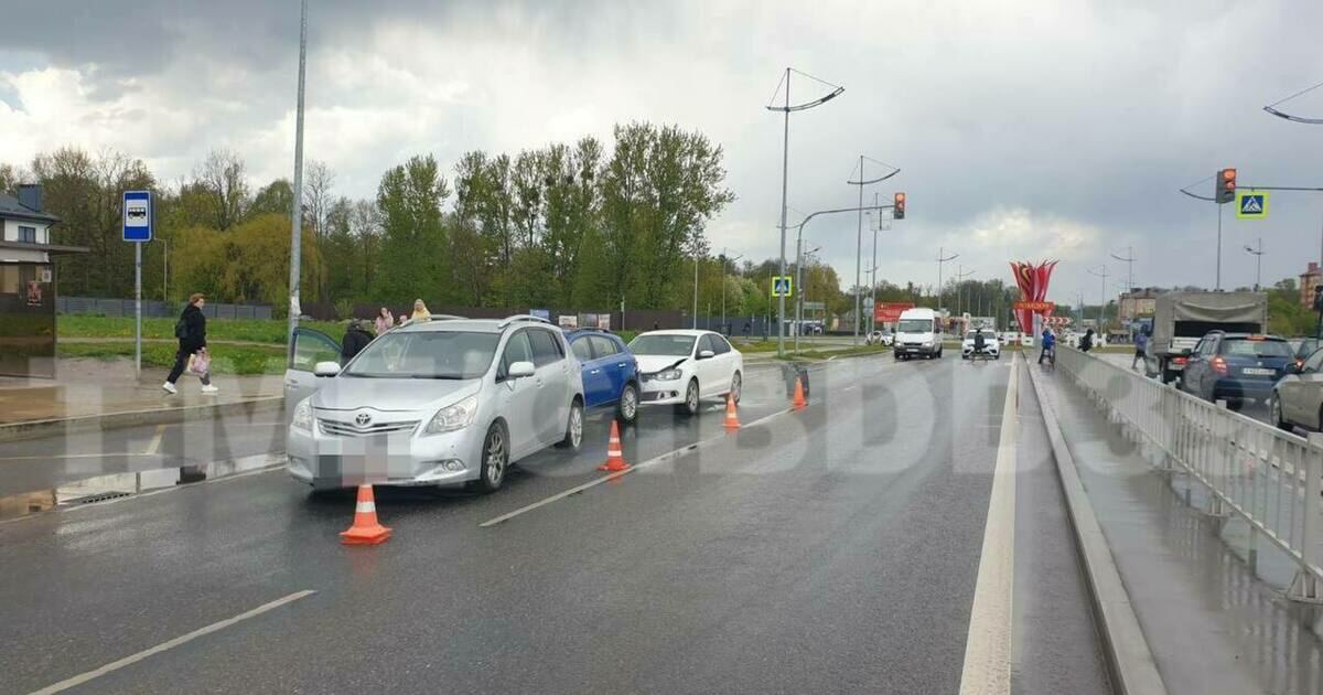 ДТП произошло в субботу, 27 апреля, в 12:05, на 10,5 км трассы Калининград — Полесск. Volkswagen выбрал небезопасную дистанцию и врезался в Kia. Второе авто по инерции продвинулось вперёд и въехало в Toyota. Травмы получила женщина 1957 года рождения, которая сидела за рулём Volkswagen.