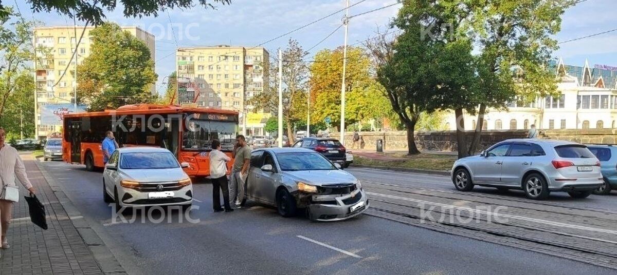 В Калининграде на ул. Черняховского в районе Музея янтаря столкнулись два автомобиля. Об этом «Клопс» сообщили очевидцы.