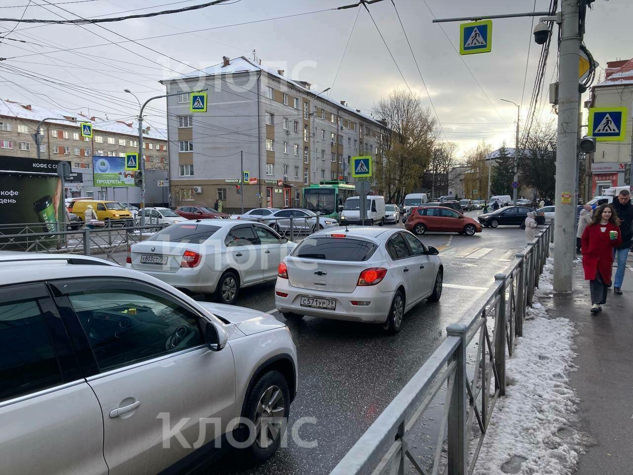В Калининграде улица Горького днём в пятницу, 22 ноября, встала в пробке из-за аварии с участием троллейбуса №7. Об этом «Клопс» сообщил очевидец.