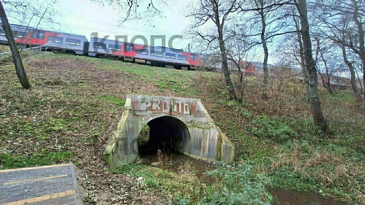 Туристический маршрут прерывает железная дорога, точнее, огромный вал. Технически через него проложен туннель, но по нему протекает речка.