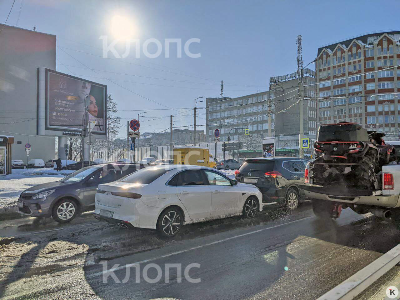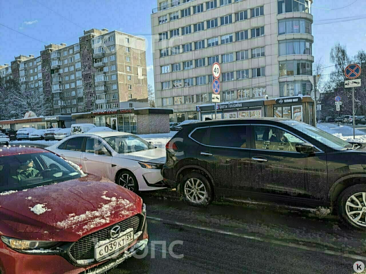 На улице Фрунзе в Калининграде столкнулись на скользкой дороге два автомобиля: белый седан Kaiyi въехал в задний бампер кроссоверу Nissan. Об этом «Клопс» сообщили очевидцы ДТП.