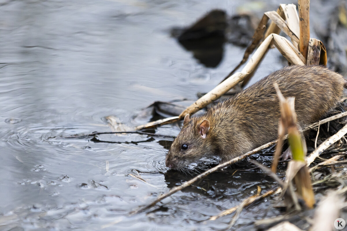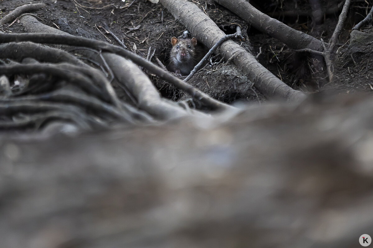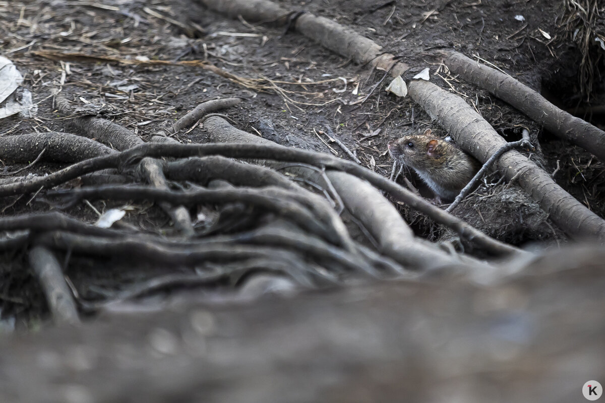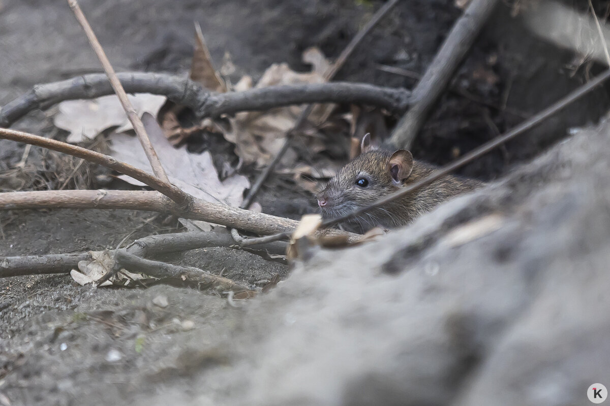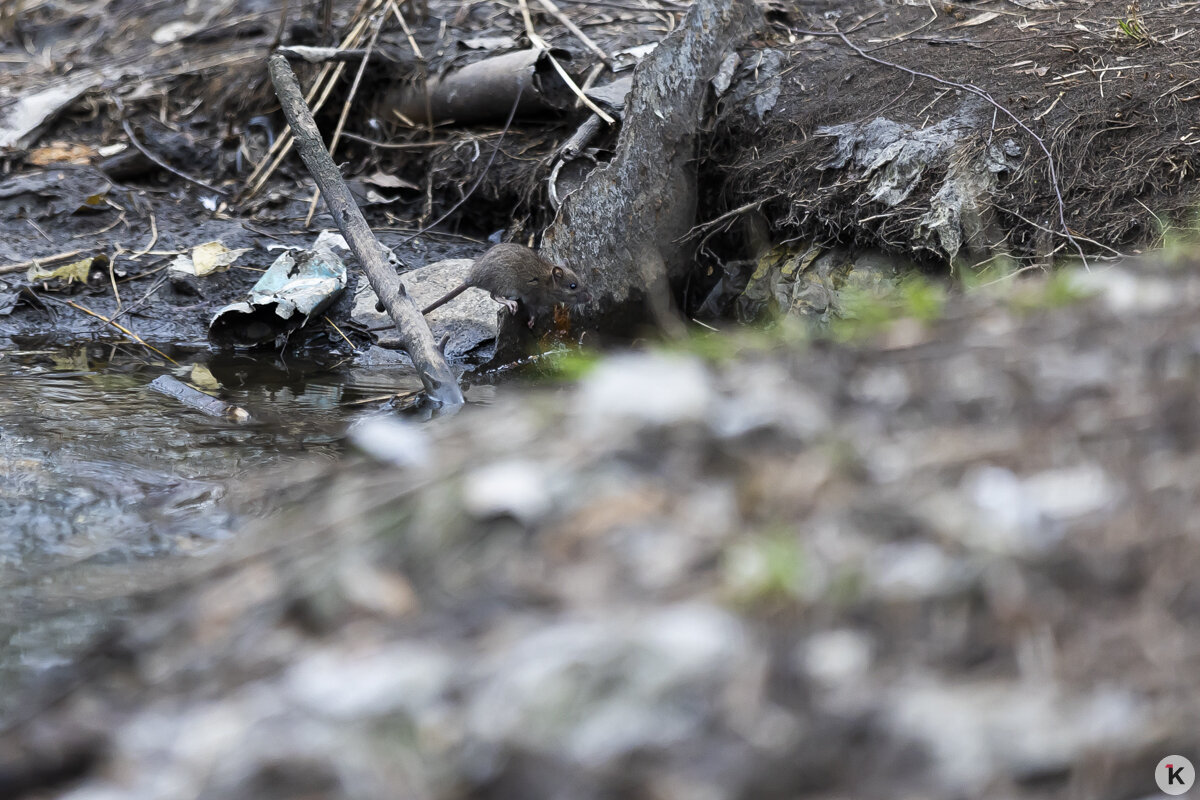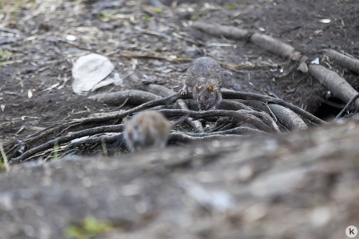 Крысы здесь чувствуют себя достаточно вольготно. Они пьют воду из ближайшего пруда, не смущаясь разделять трапезу со своими соседками — кряквами.