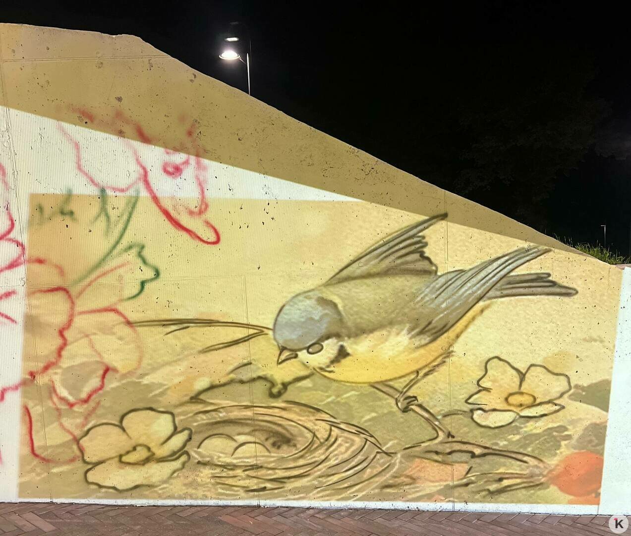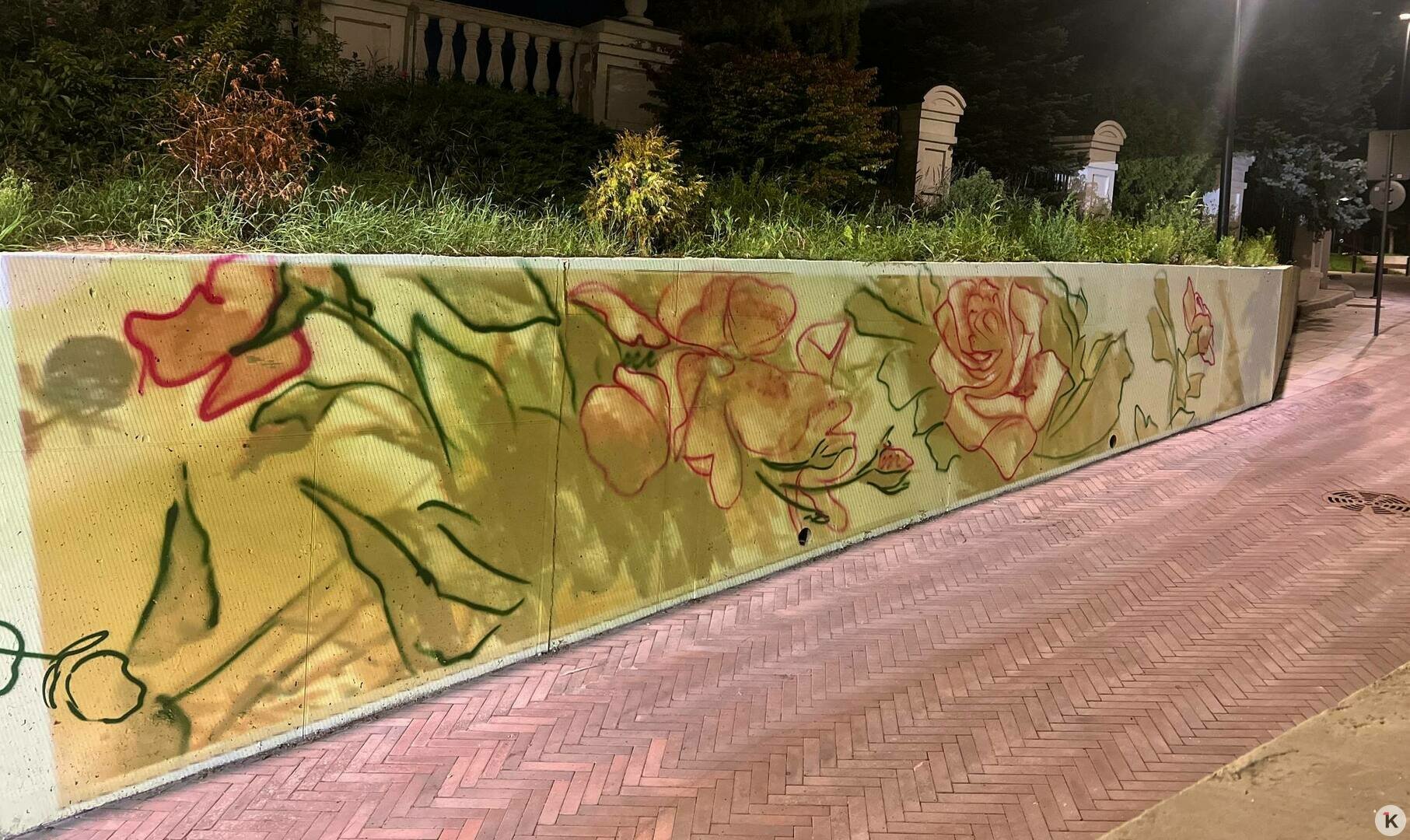 Сюжет и стилистика изображений отсылают к творчеству известной художницы Катарины Кляйн, которая родилась в будущем Багратионовске уже больше ста лет назад. Катарина считается одной из лучших флористок Европы: её рисунки с птичками и розами украшали книги, блокноты, закладки, обёртки для мыла, конфетные коробки, посуду... Теперь напоминать о них будет и работа Кирилла.
