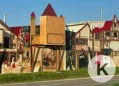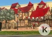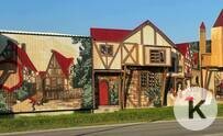 Теперь на их месте вздымаются к небу башенки и черепичные крыши, золотятся под солнцем балки фахверков, жители спешат по своим делам, а во двориках гомонят куры и гуси. Так что издали здание вполне можно принять за настоящий старинный городок, бог весь откуда явившийся в XXI век.