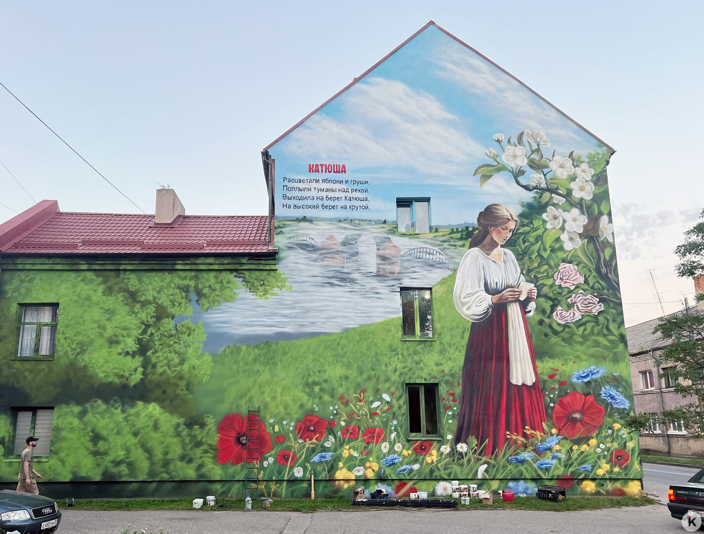 Изображение девушки, героини советской песни «Катюша», появилось на фасаде жилого дома на улице Калининградской. Создание картины заняло почти три месяца. Сюжет неслучаен. Мурал решили написать к 80-летию Великой Победы и образованию Калининградской области. Администрации города хотелось, чтобы он символизировал любовь к родине, но при этом не был официозным.