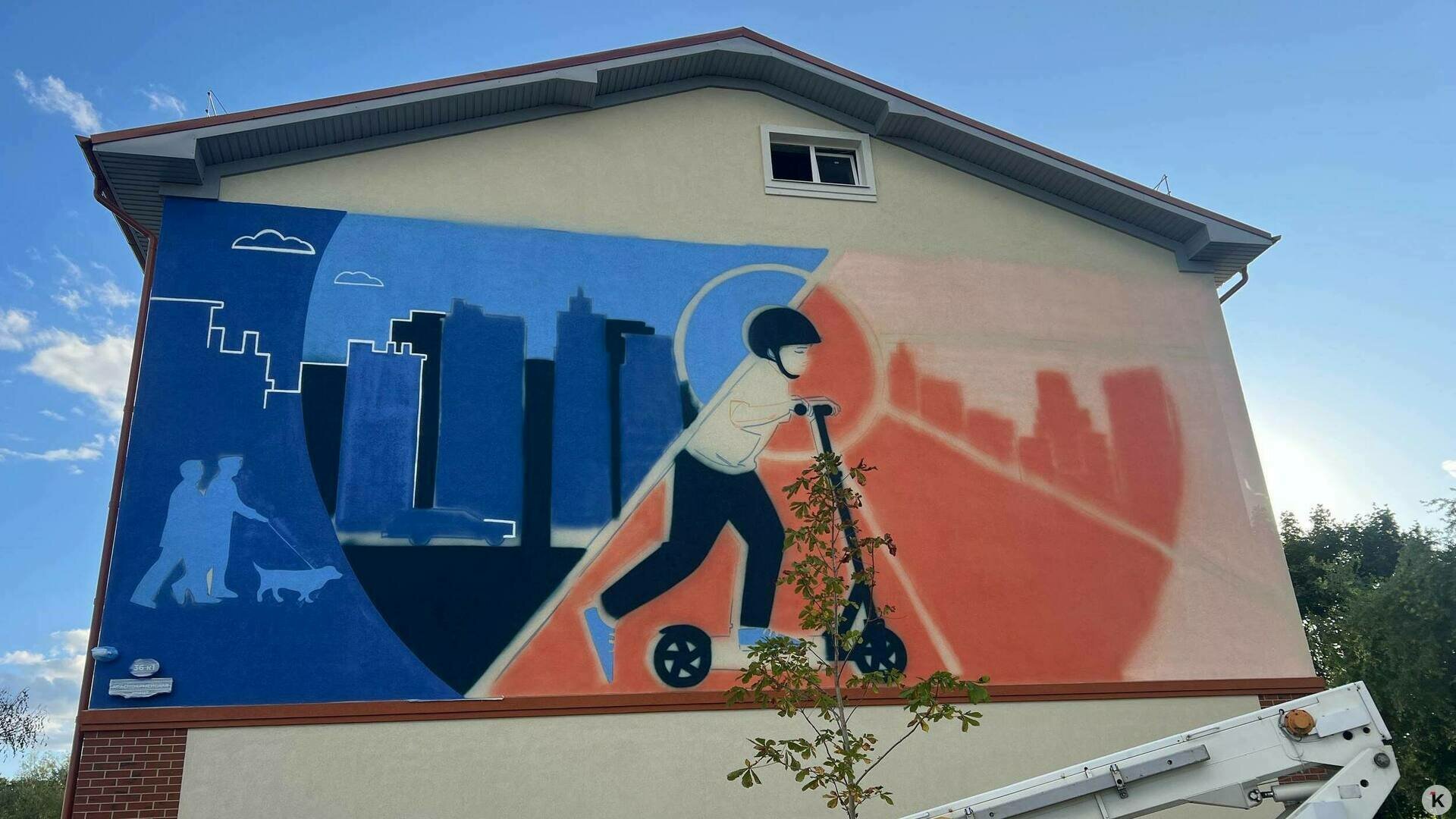 Второй проект — в Немане: Кирилл оформляет в соответствующем стиле два здания для рабочих Россетей. Там тематикой стала энергия: по стене одного дома летит парнишка на электросамокате, на другом появится электромобиль. Эта работа, по словам художника, тоже будет закончена в ближайшее время.