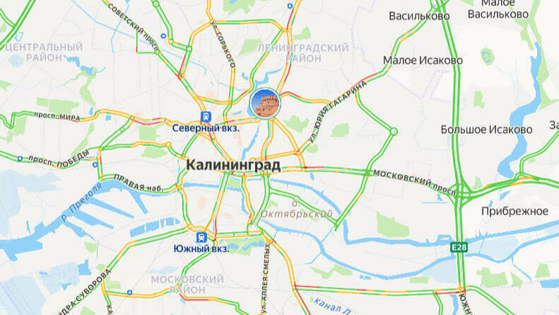 Калининград утром в понедельник, 1 сентября, встал в пробках. Об этом говорят данные сервиса «Яндекс. Карты».