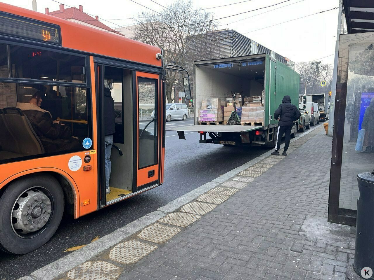 «Сажусь в автобус между стеллажом с рыбой и коробками с хлебом. Это если повезёт, а бывает так, что и автобусов не видно из-за них», — жалуется калининградка Татьяна.