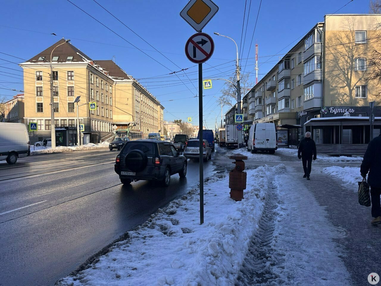 Аналогичные сложности и возле другого кармана — на Черняховского. Там в угоду автомобилистам заузили тротуар, да так, что пешеходам не протиснуться среди машин.