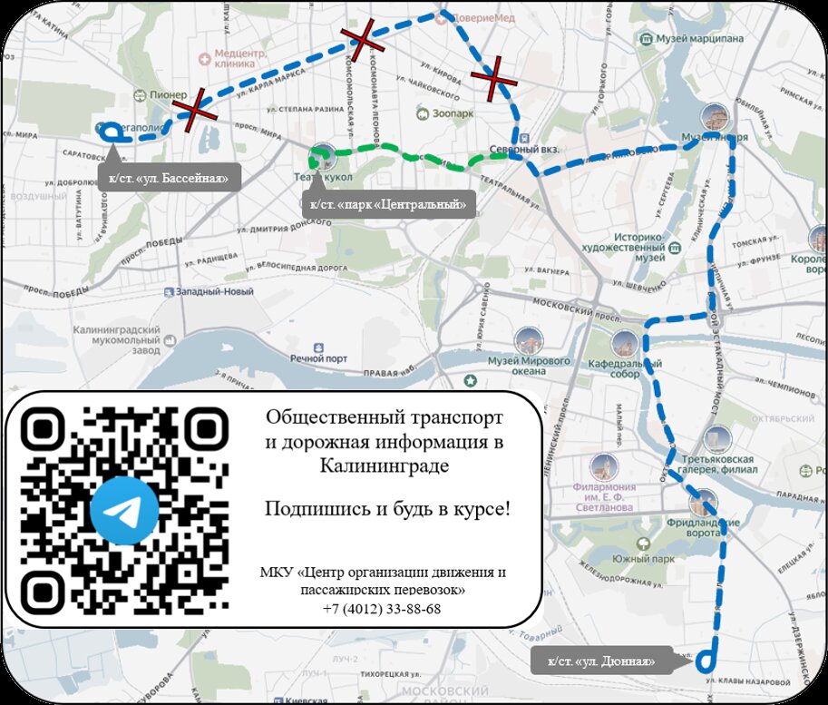 С 22 сентября по 31 декабря около Северного вокзала «пятёрки» будут сворачивать на проспект Мира и следовать по Центрального парка вместо прежнего маршрута по Советскому проспекту и Карла Маркса. Временные неудобства связаны с ремонтом путей на конечной остановке на Бассейной.