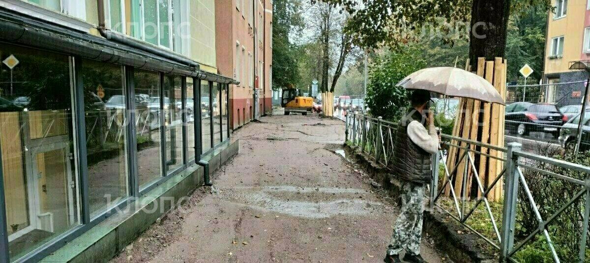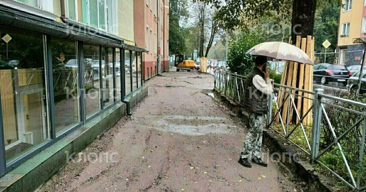 В Калининграде подрядчики приступили к ремонту тротуара около лицея и филиала университета, дождавшись начала учебного года. Детям приходится месить грязь и ходить по проезжей части.