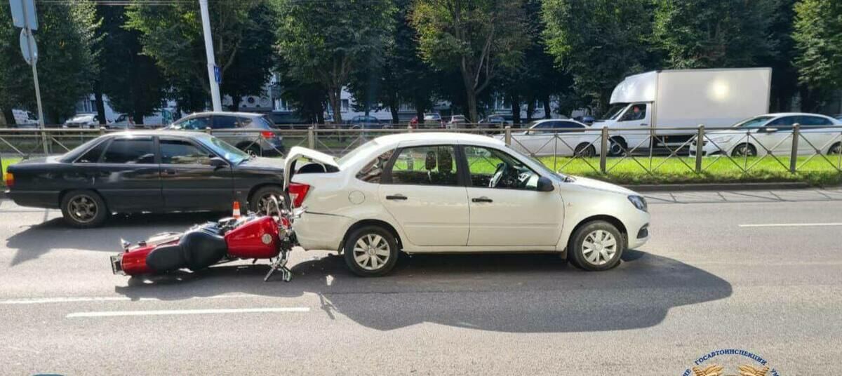 ДТП произошло в среду, 24 сентября, около 11:20 на Московском проспекте в районе дома №19. Байкер столкнулся с попутной «Ладой» и упал. 41-летний мужчина получил травмы: предположительно, у него перелом лопатки. Пострадавшего увезли в больницу.
