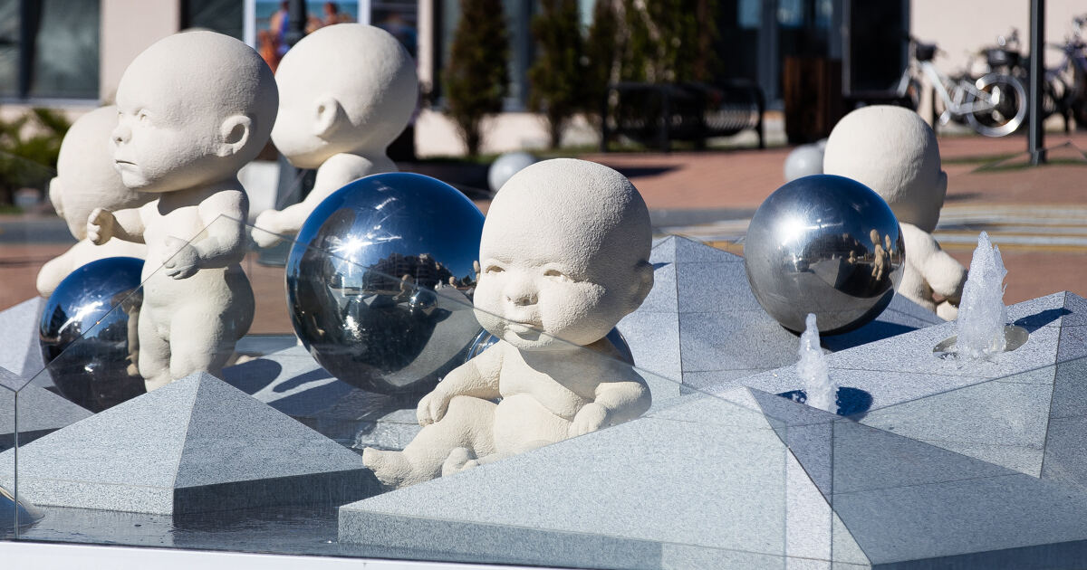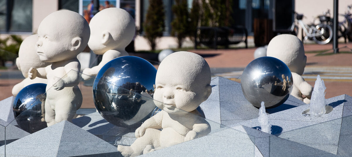 «Когда смотришь на этих малышей, понимаешь, что у них уже есть ипотека и кредит на ремонт. Но всё не так просто — у композиции глубокая философская идея: многие черты характера взрослые люди получают с рождения. Поэтому у пупсов несколько типажей и разные эмоции на лице», — говорится в описании достопримечтельности.