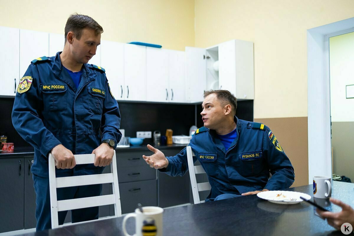 Только что эти четверо симпатичных плечистых парней мирно обедали за просторным столом. Кто-то в шутку препирался с соседом из-за кружки. Кто-то осторожно прихватывал зубами горячий пельмень. Звук сирены, внезапно разрезавший воздух, меняет всё. Кухня пуста. За сколько секунд собирается расчёт на вызов, что можно понять по цвету дыма и почему огнеборцы не чистят сапоги, узнал корреспондент «Клопс», который провёл один день в пожарной части №1 в Калининграде.