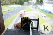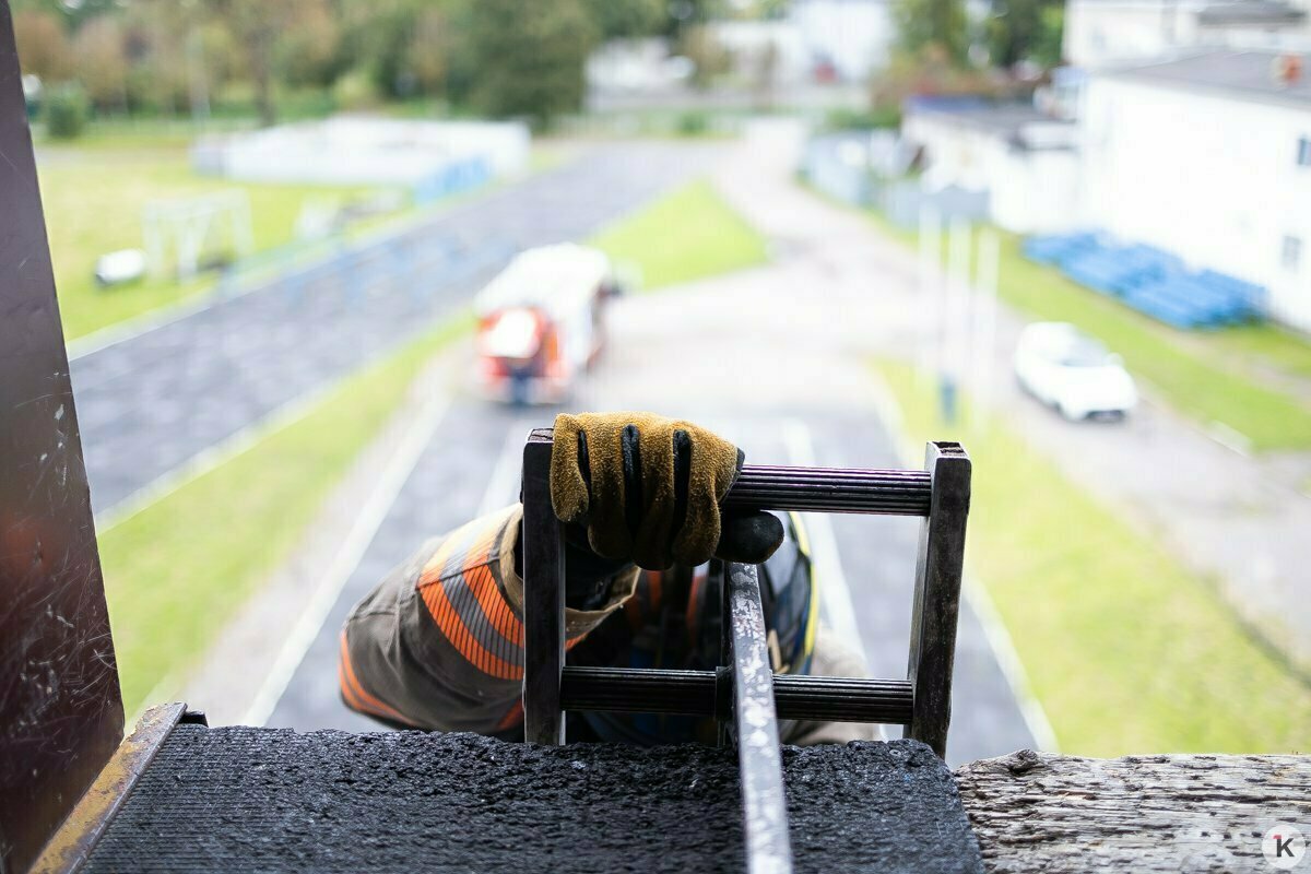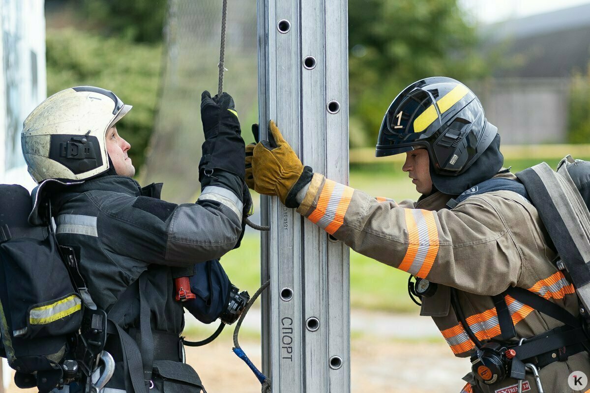 Пожарные Денис Борисов и Андрей Старцев, ожидая, пока Роман и Артём закончат тренировку по спортивному подъёму, обсуждают обновление формы. Хорошая экипировка повышает коэффициент полезного действия пожарного. Когда он уверен, что не перегреется, не промокнет, то и задачу сможет выполнить быстрее. Отдельный разговор — обувь. Кожаные сапоги Дениса служат ему не один год и явно видали лучшие дни.
