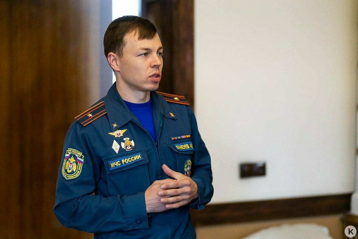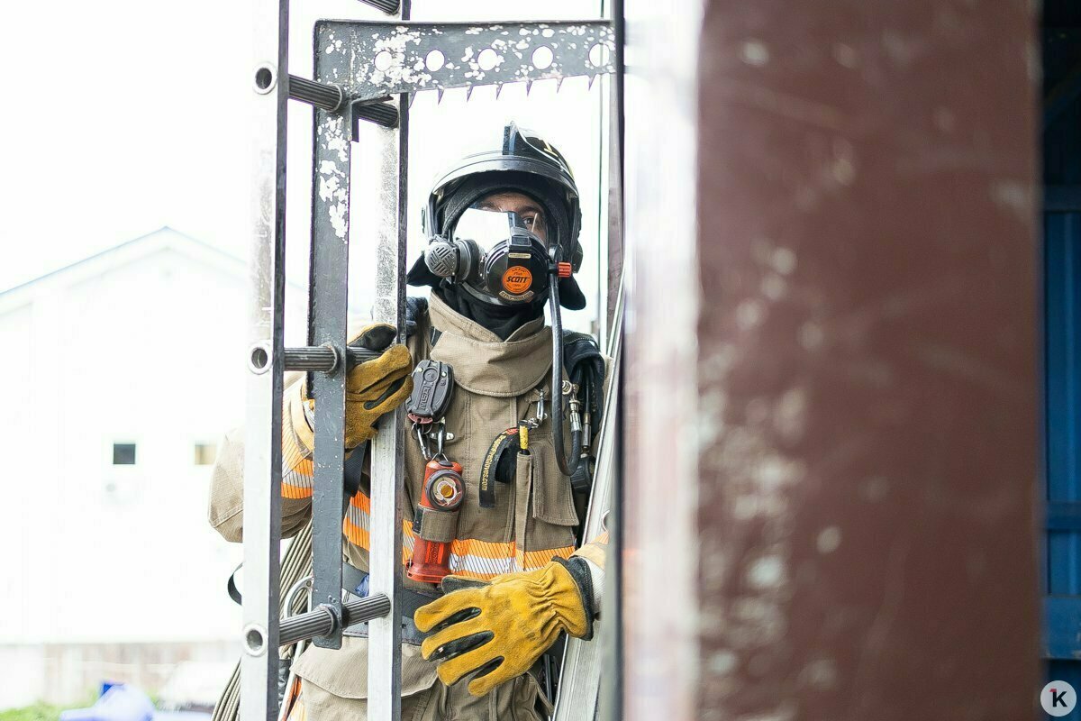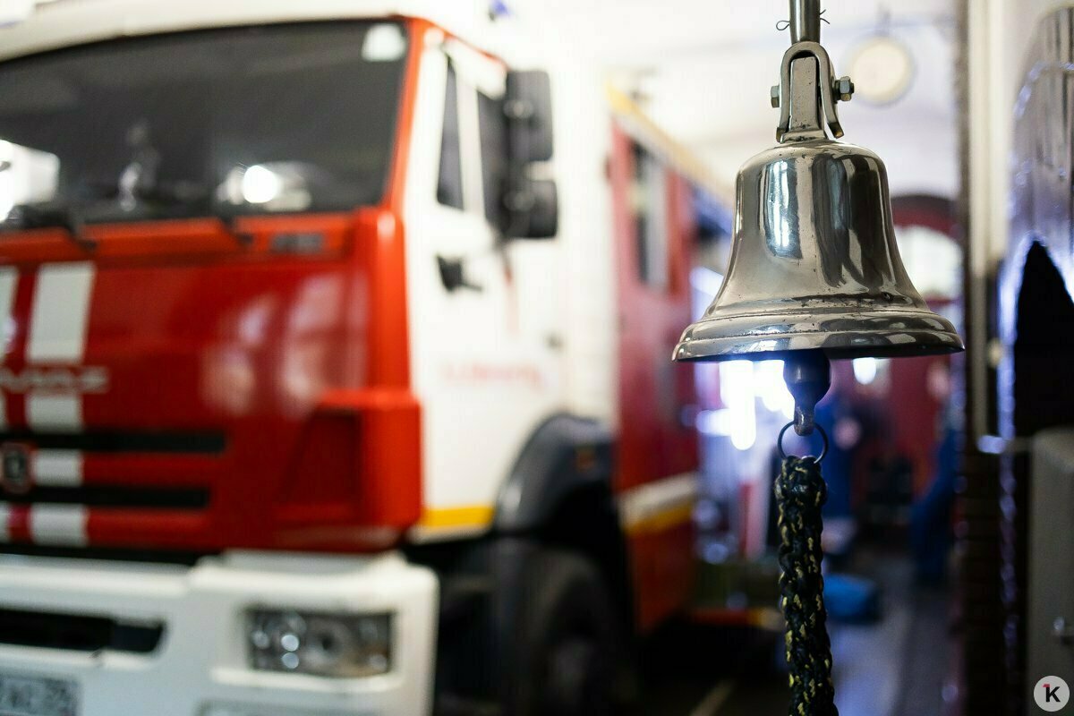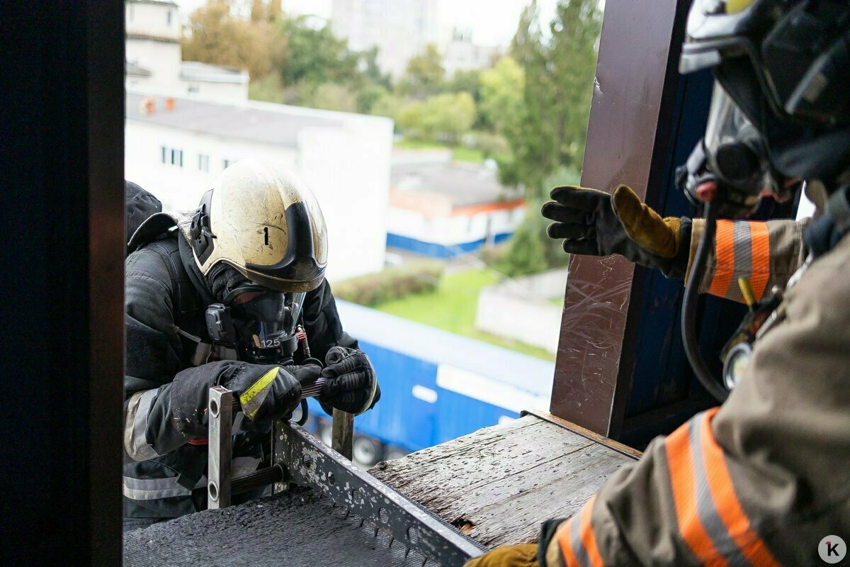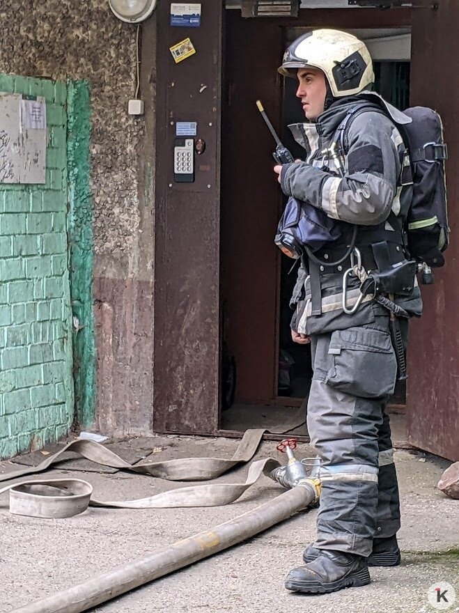 Уже по дороге диспетчер по рации уточняет детали. Горит квартира на Московском проспекте, внутри — двухлетний ребёнок. Звонок поступил в 12:27, в половину первого пожарные уже заходят в подъезд.
