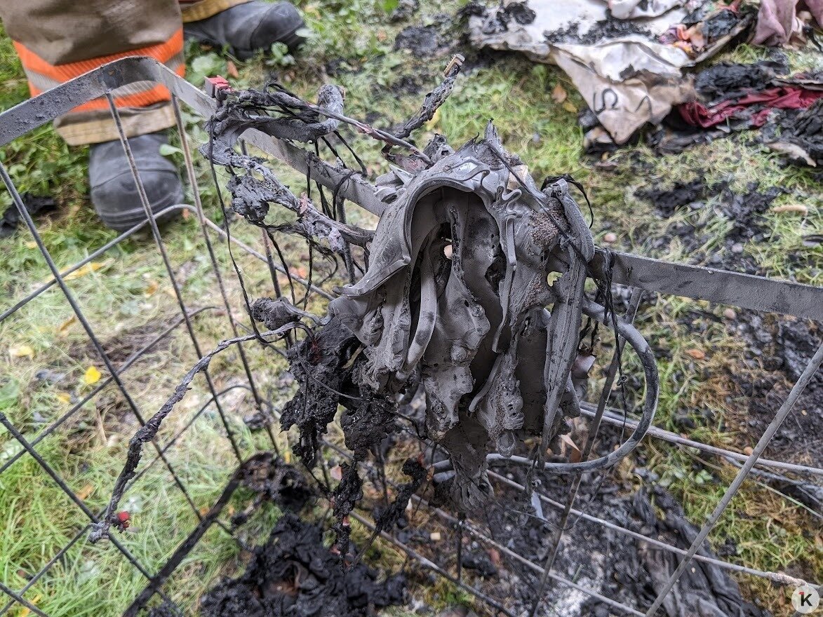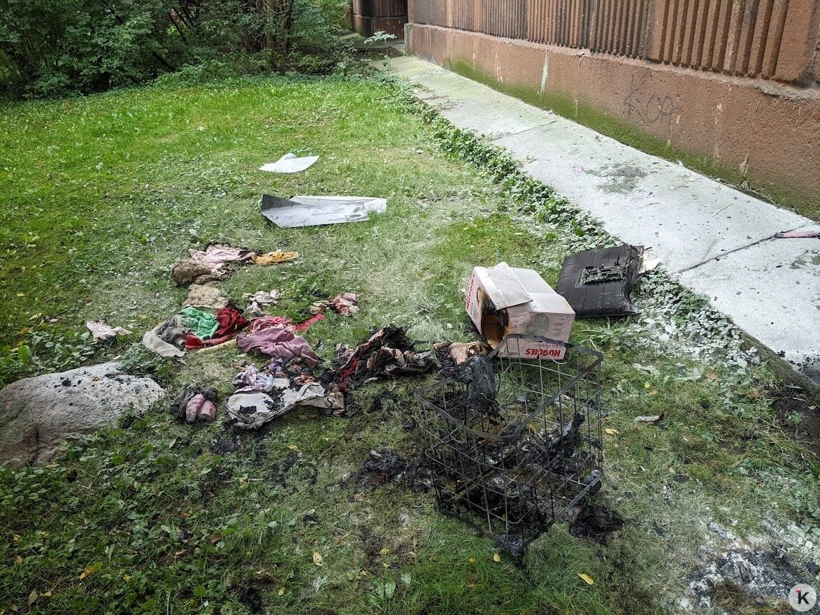 Чуть позже на улицу выходит ошарашенная бледная девушка в бежевой толстовке и с испачканной сажей щекой. На руках она держит отчаянно вцепившегося в её плечи толстого сиамского кота. Это хозяйка квартиры — Анна (имя изменено).