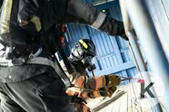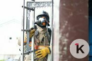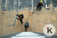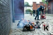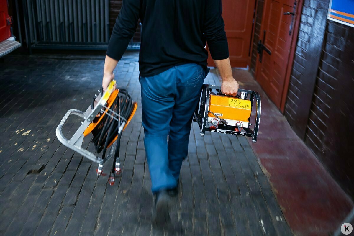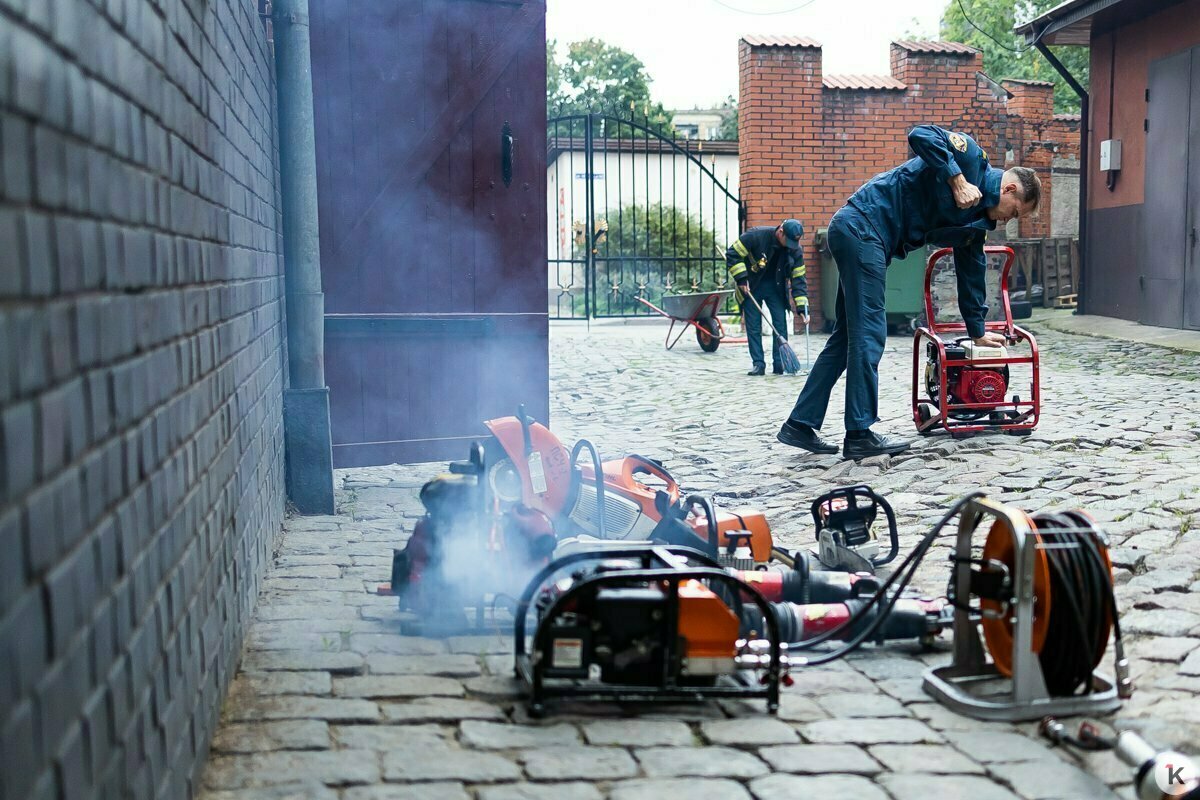 Первая смена отправляется отдыхать, а их коллеги приступают к очередной обязательной проверке. Несколько человек вытаскивают во двор части оборудование, нагнетательные вентиляторы, бензопилы, гидравлические ножницы по металлу. Они проводят внешний осмотр и проверку работоспособности оборудования.