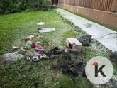 Артём и Роман обходят дом: нужно убедиться, что перестали тлеть выброшенные ими из окна вещи, которые Андрей успел залить водой. От сгоревшего прибора не осталось вообще ничего. Телевизор явно ремонту не подлежит, да и штанишки и кофточки девочке носить уже не придётся. А вот пачка памперсов почти не пострадала: у картонной коробки выгорел бок, но сами подгузники только слегка обуглились.