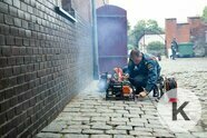 Грохот и бензиновый чад не в силах отпугнуть четырёхлетнего калининградца Артёмку, который заворожённо наблюдает за процессом с улицы.