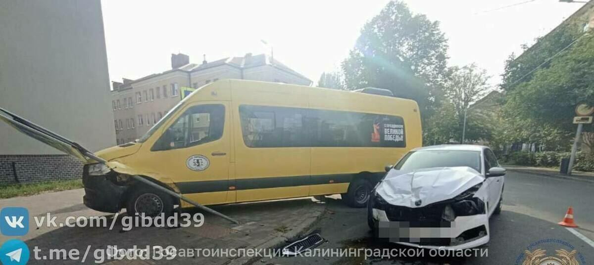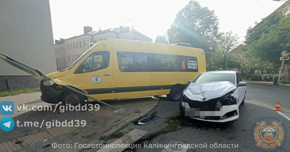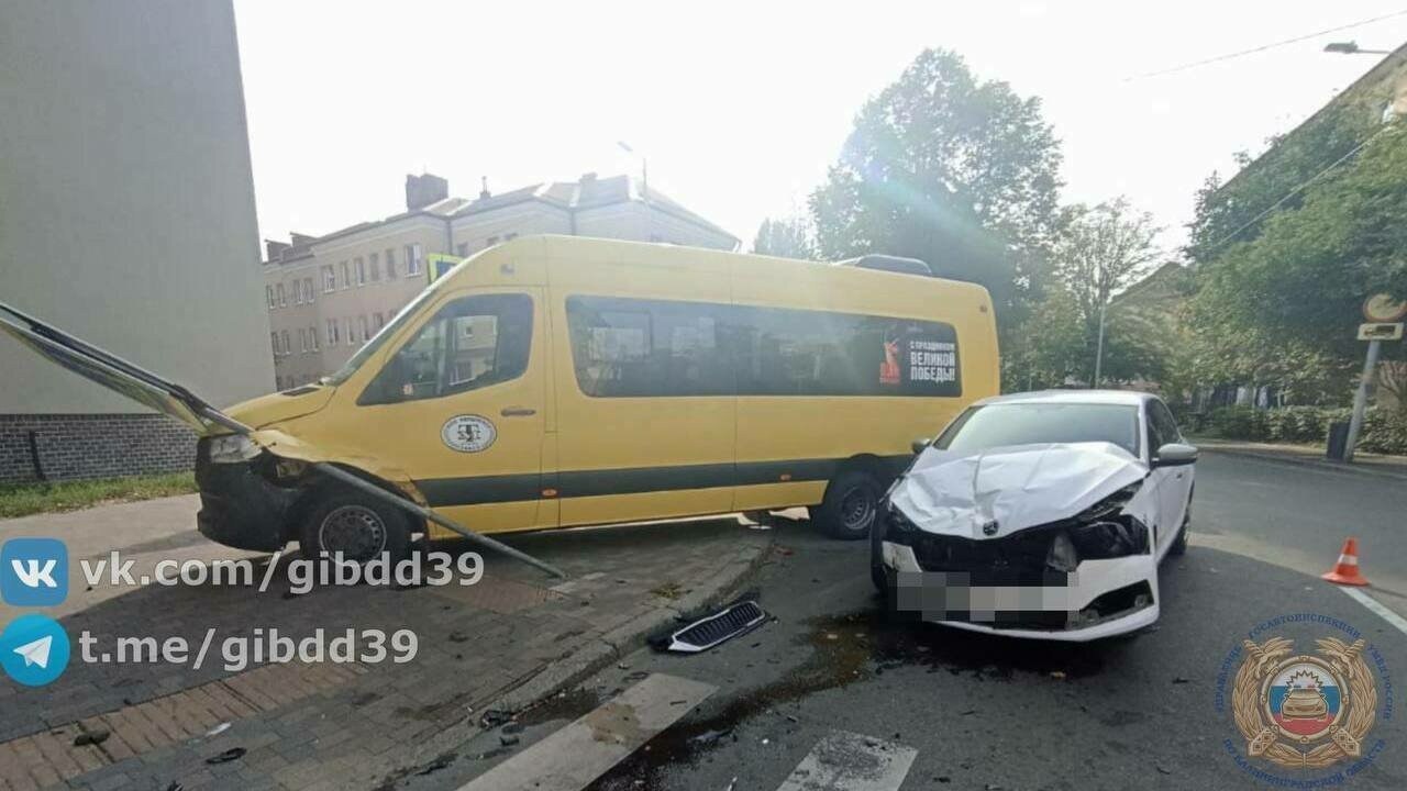 В Калининграде легковой автомобиль столкнулся с маршрутным такси. Пострадали двое пассажиров микроавтобуса. Об этом сообщает региональная Госавтоинспекция.