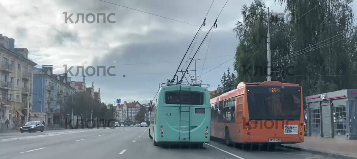 В Калининграде на Ленинском проспекте остановились троллейбусы и трамваи (видео)