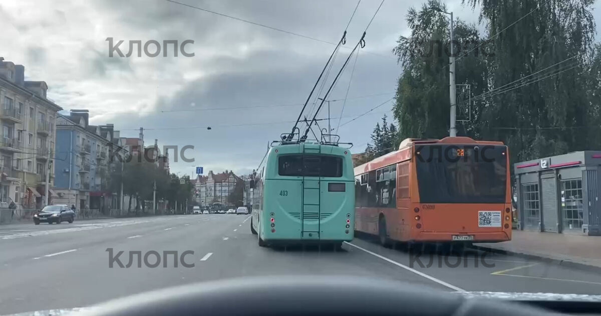 В Калининграде на Ленинском проспекте остановились троллейбусы и трамваи. Об этом «Клопс» сообщил очевидец.