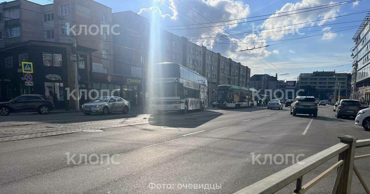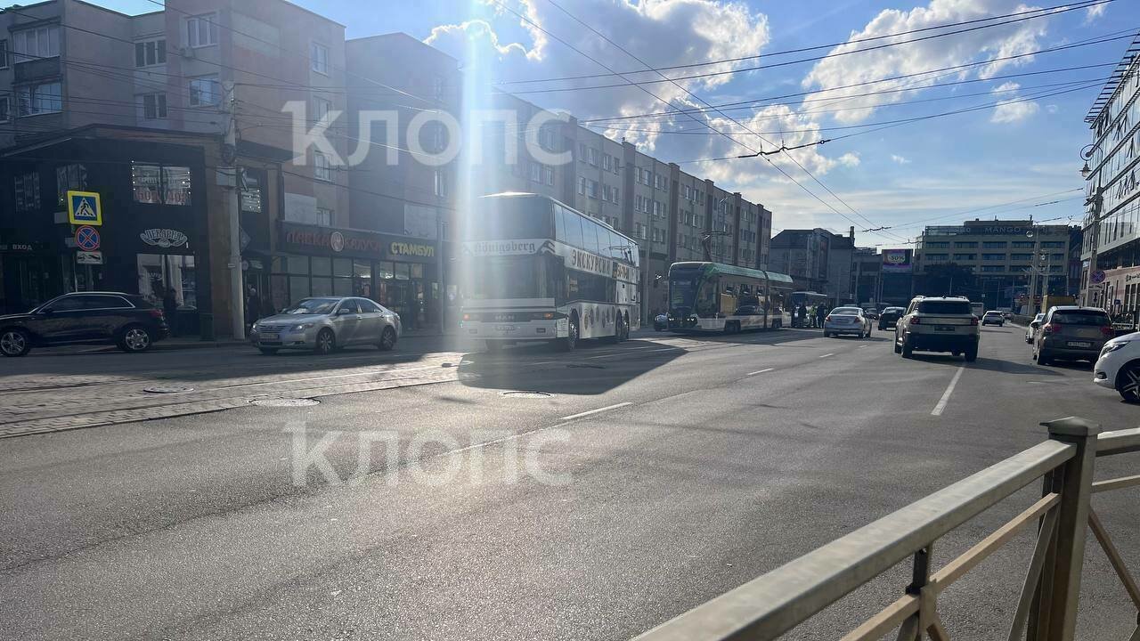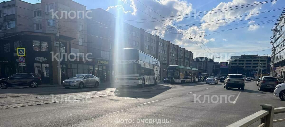 В Калининграде на улице Черняховского туристический автобус столкнулся с трамваем. Об этом «Клопс» сообщили очевидцы во вторник, 7 октября.