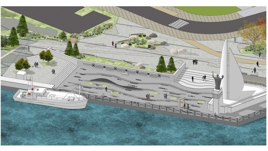 У памятника, перед музейным судном СРТ-129, предлагают сделать большую скамейку-волну и установить пять кадок с сакурой, здесь планируют установить фонари и малые архитектурные формы, а также замостить весь участок и сделать подсветку монумента.