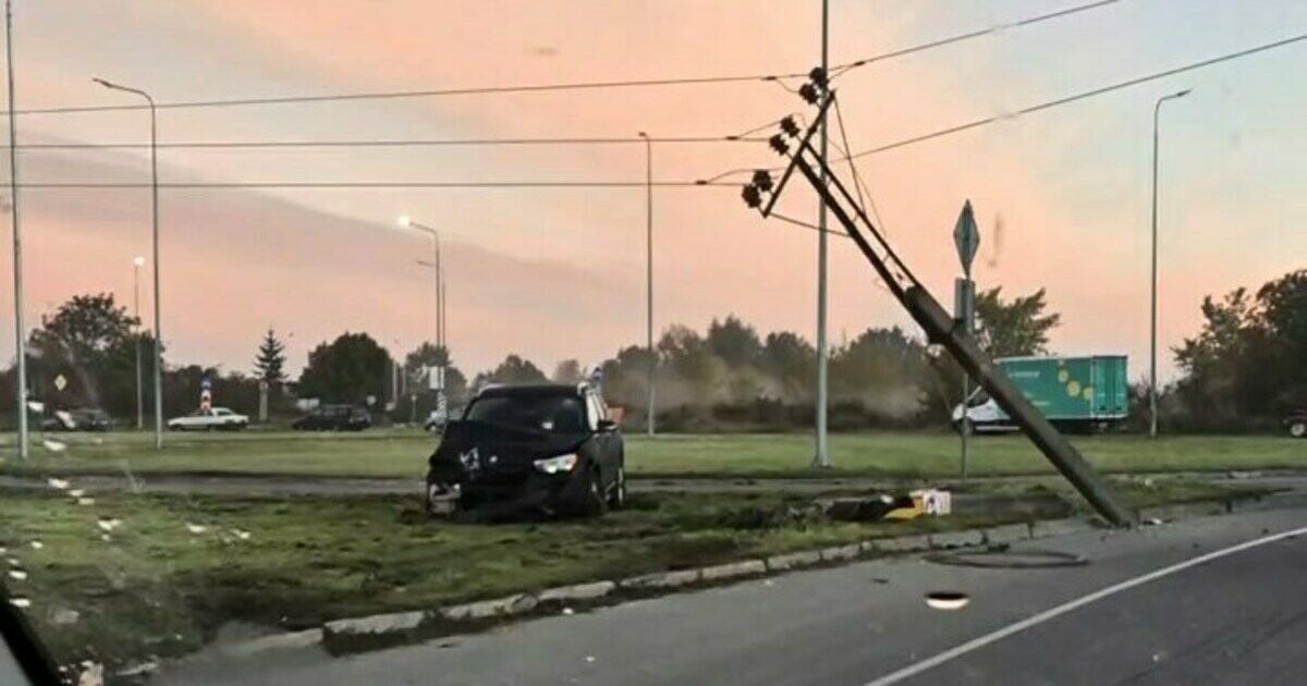 После столкновения одна из машин вылетела на зелёный разделительный островок и снесла электрический столб. О пострадавших не сообщается.