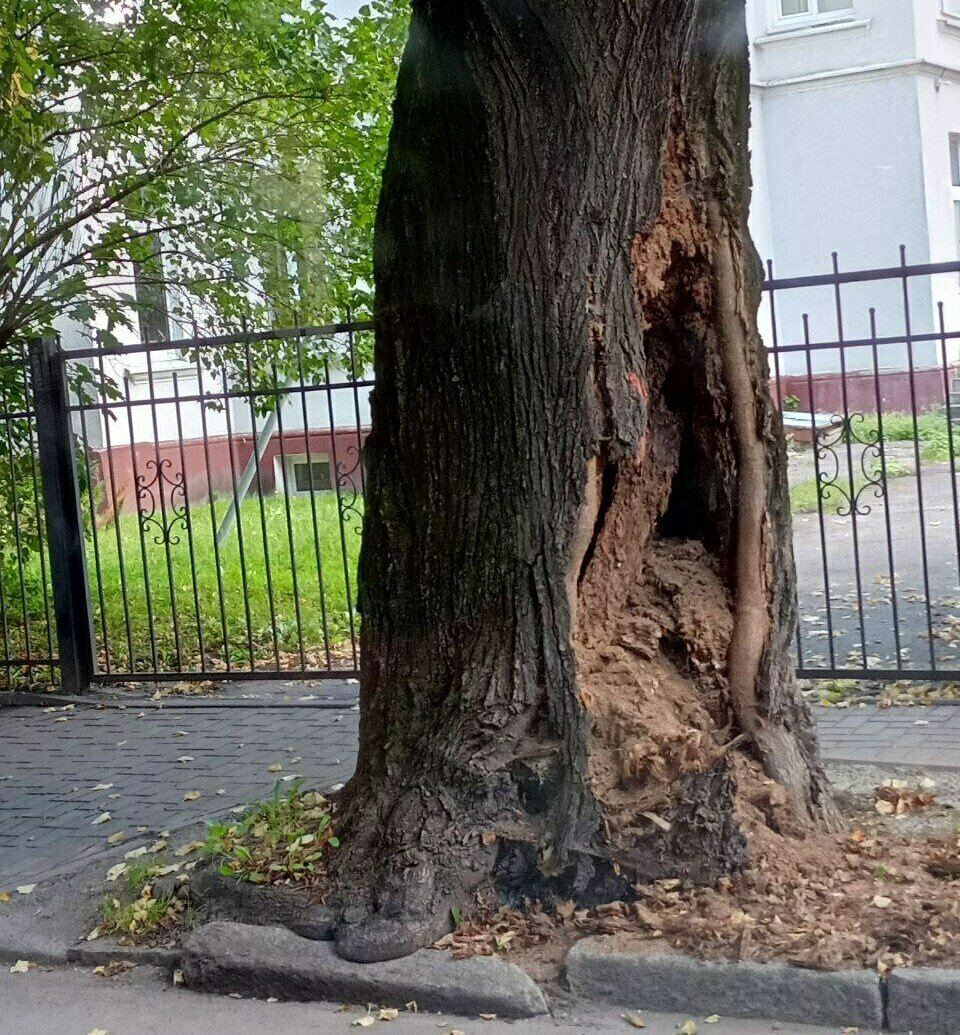 «На этом участке улицы постоянно паркуются машины и играют дети. Рано или поздно дерево упадёт... Его необходимо убрать», — подчеркнули очевидцы.