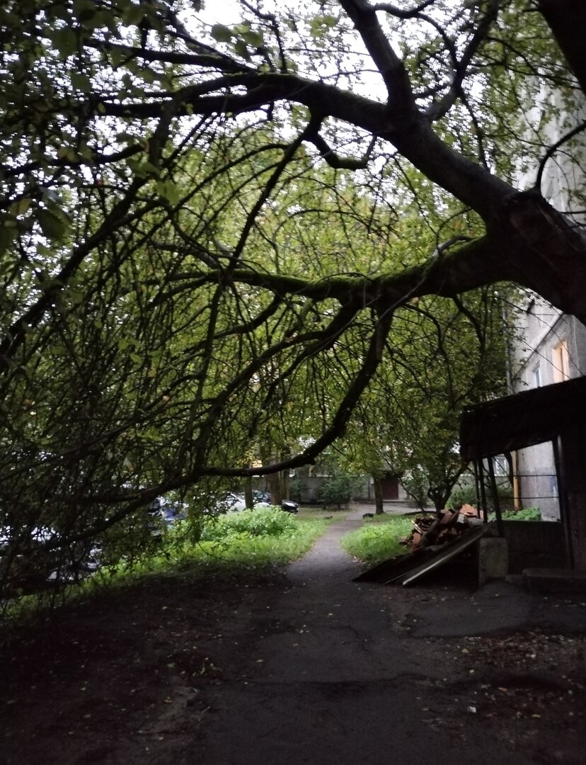Читатель обратил внимание, что во дворе дома 67-71 стоит несколько деревьев, готовых рухнуть: «Боимся, что упадёт на голову».