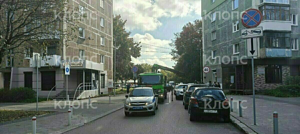На улице Иванникова в Калининграде начали забирать на штрафстоянку машины, припаркованные вдоль сплошной линии у края проезжей части. Об этом «Клопс» рассказали местные жители.