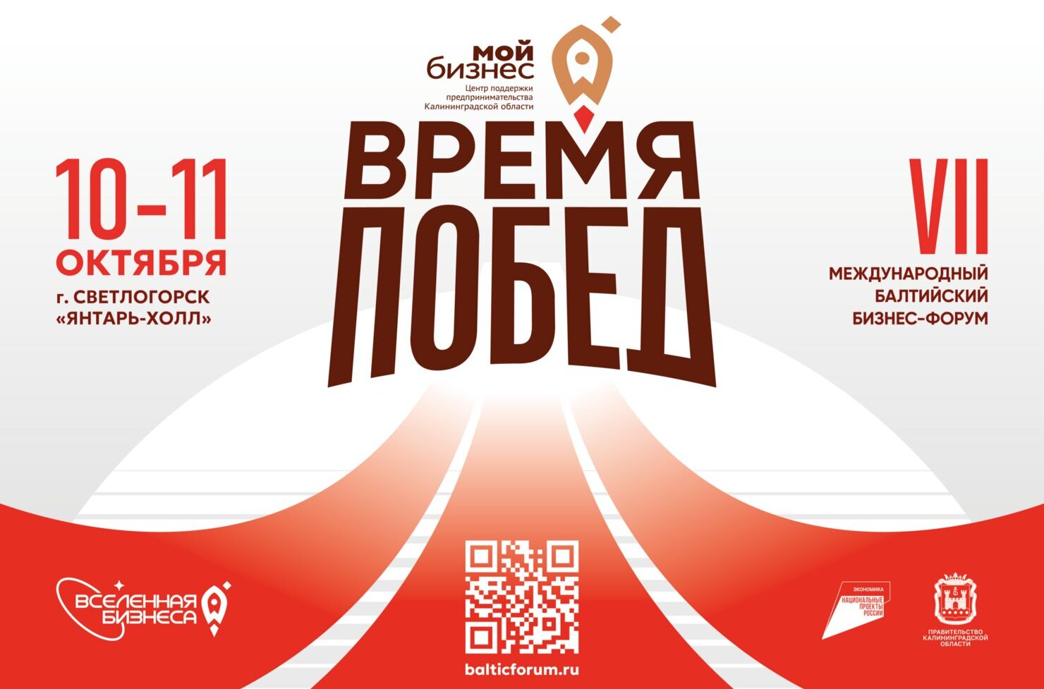 10 и 11 октября в «Янтарь-холле» пройдёт VII Международный балтийский бизнес-форум — одно из самых крупных деловых событий Калининградской области. Организаторы — правительство региона и Центр «Мой бизнес» Калининград. В этом году форум пройдёт под названием «Вселенная бизнеса. Время побед». На протяжении двух дней участники смогут посетить десятки площадок — от пленарных сессий с участием первых лиц до практических мастер-классов от ведущих экспертов страны.