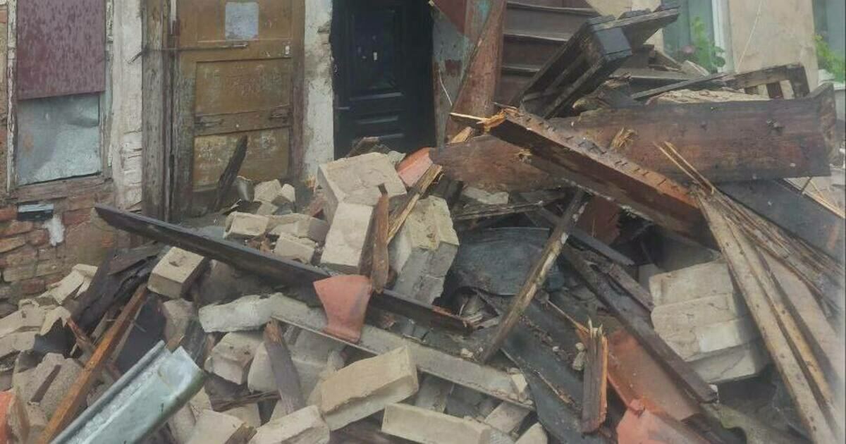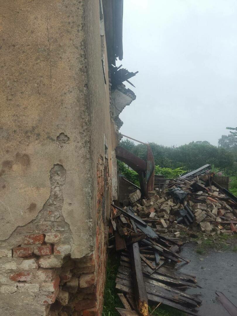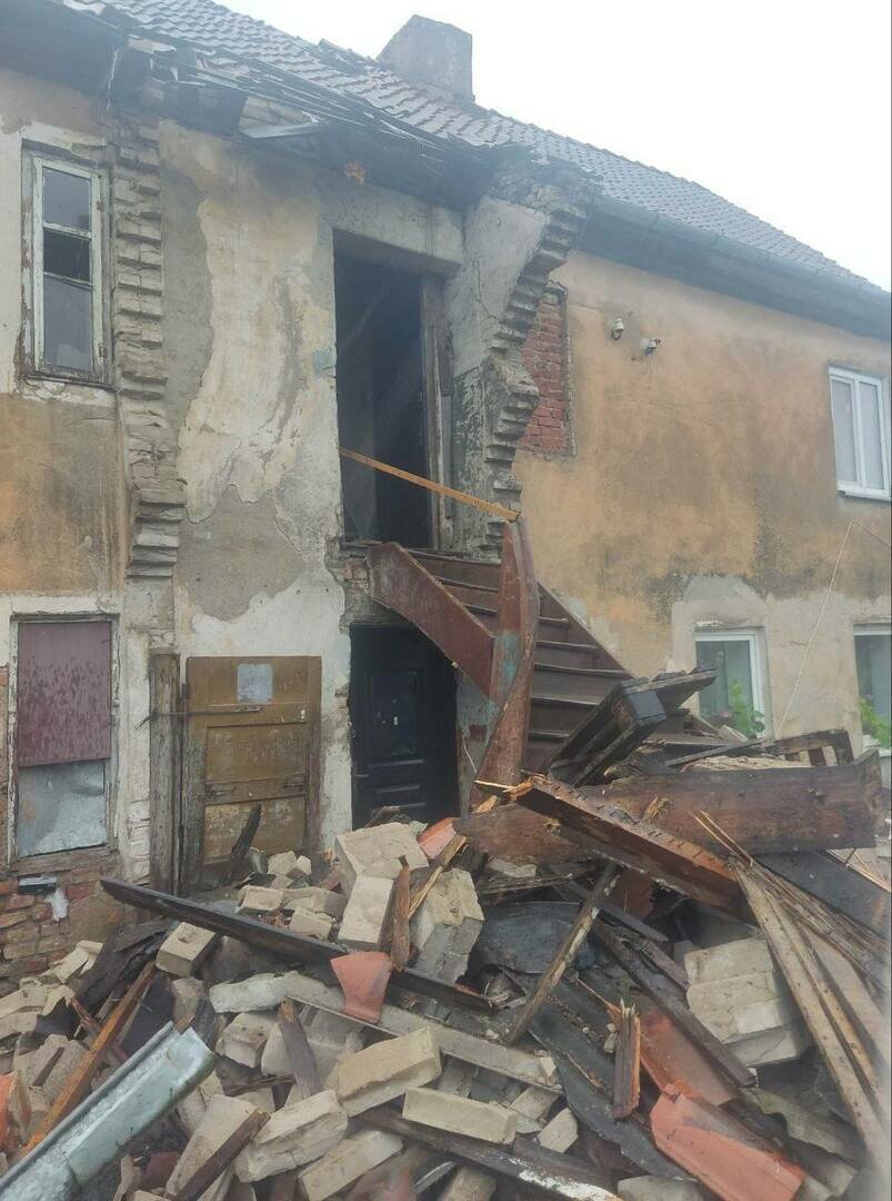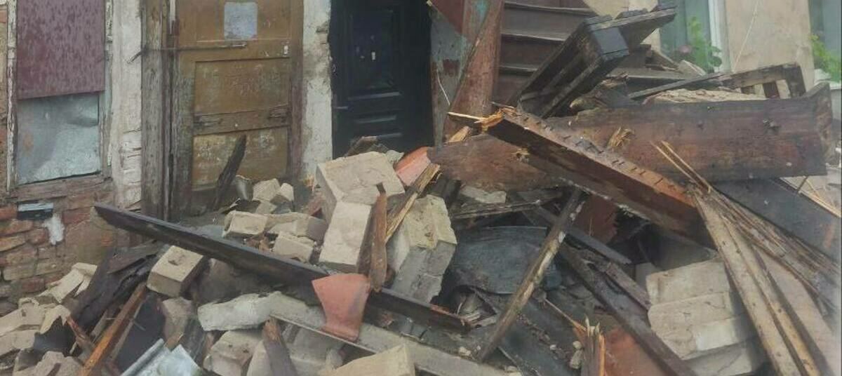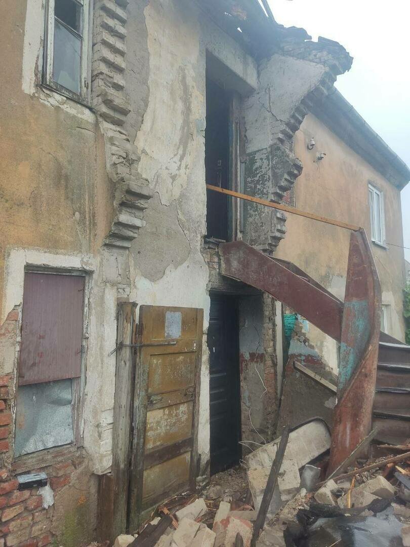 Жители аварийного дома в Советске оказались в ловушке после того, как работники управляющей компании снесли веранду, оставив во дворе груду кирпичей.
