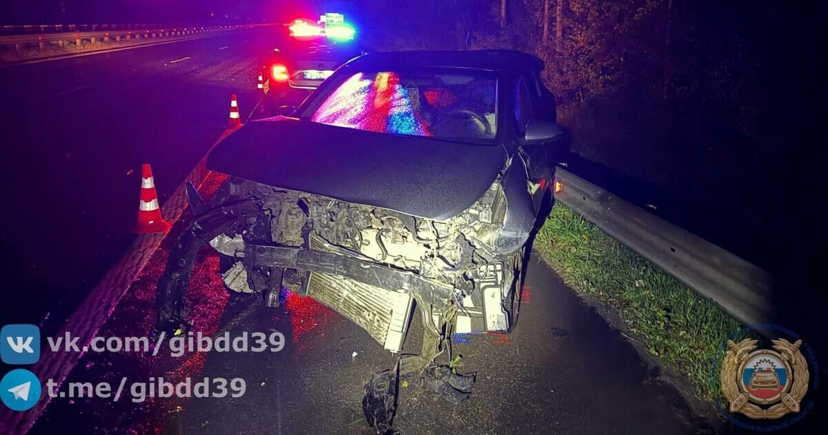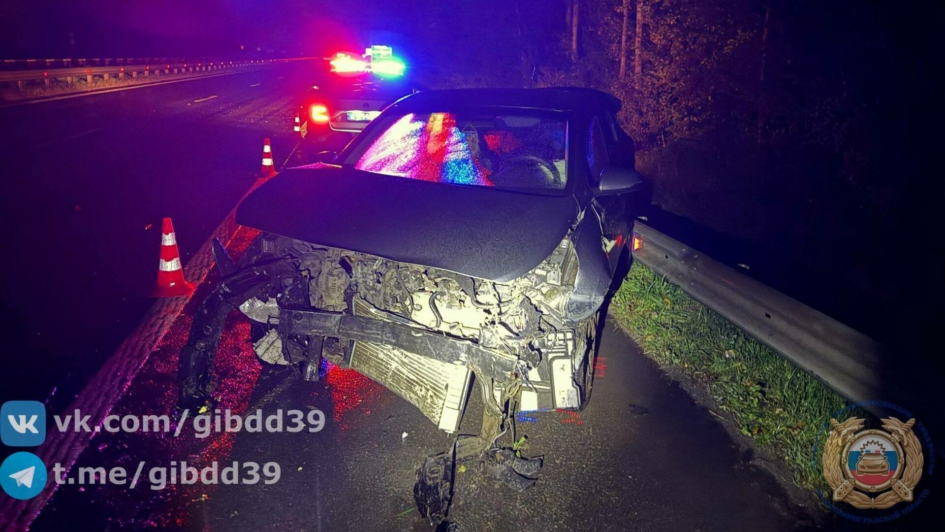 ДТП произошло в воскресенье, 12 октября, в 20:55, на 42,5 км трассы Калининград — Черняховск — Нестеров — граница с Литовской Республикой. Водитель, управляя неустановленным автомобилем, неверно выбрал дистанцию и врезался в Hyundai. За рулём второй машины сидел 49-летний мужчина. От столкновения Hyundai отбросило на дорожное ограждение. Водитель легковушки получил травмы.