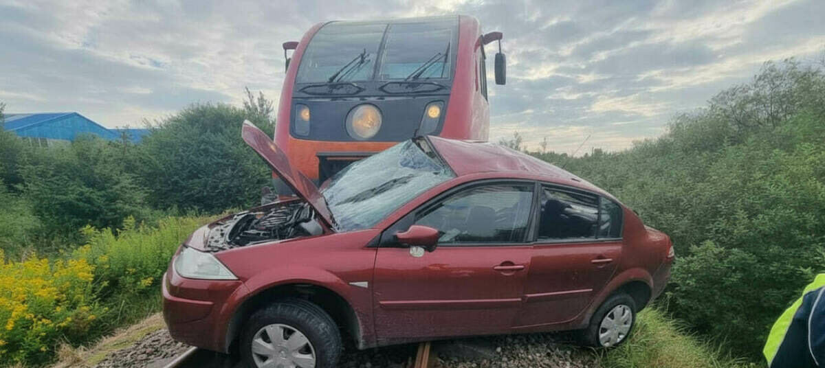 9 сентября автомобиль Renault столкнулся с поездом. Водителя машины обвинили в нарушении ПДД. По версии ГАИ, он выехал на переезд на запрещающий сигнал.