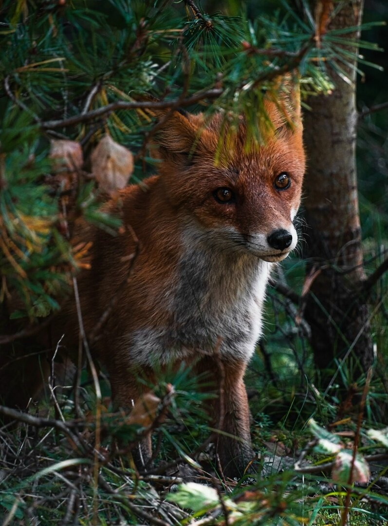 В объектив Максима попались две лисицы. Они подходили вплотную к фотографу, надеясь на лакомство, преданно заглядывали в глаза и, не получив желаемого, разочарованно уходили в сосны.