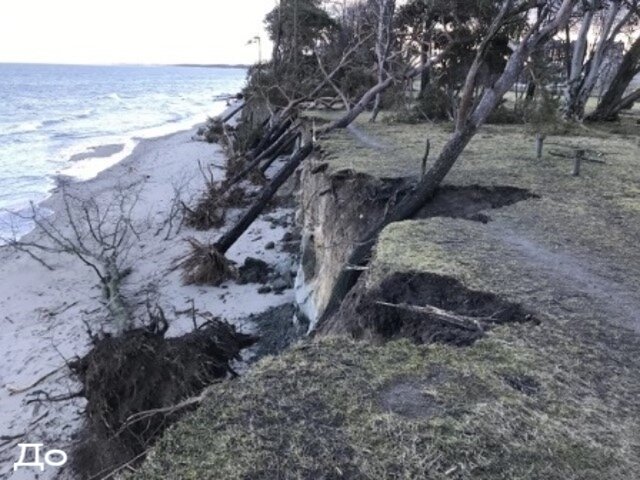 Специалисты показали, как изменился изъеденный штормами берег в Куликово за несколько лет. Фото опубликовали на странице ГБУ КО «Балтберегозащита» «ВКонтакте».