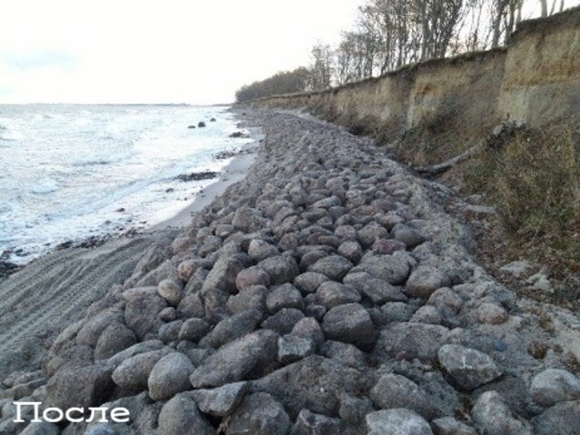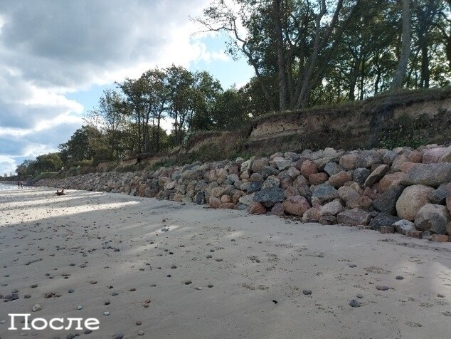 В феврале сообщалось, что в Куликово, где январские штормы 2022-го разнесли склоны, почти завершили берегоукрепление.
