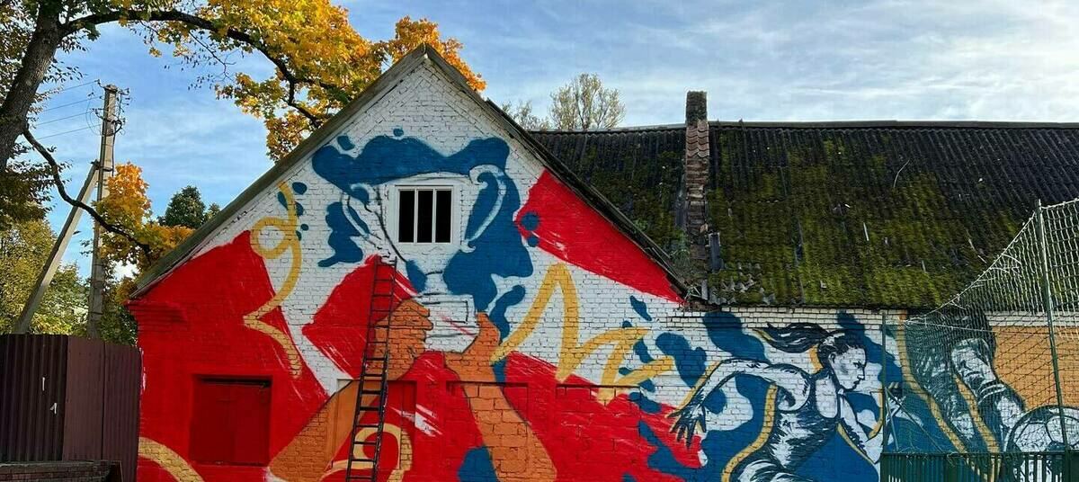 Мурал включает четыре сюжета, посвящённых спортивной теме. На стене теперь красуются изображения бегуньи, боксёра, футболиста и победного кубка, а также надпись «Спорт — твой путь к успеху и здоровью».