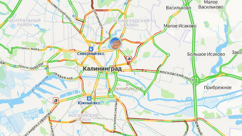 Калининград утром в пятницу, 17 октября, встал в пробках. Об этом говорят данные сервиса «Яндекс. Карты».