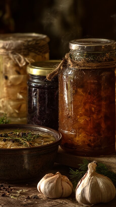 За 5 минут до готовности влить уксус, при необходимости добавить специи. Разложить по стерильным банкам и сразу закатать. Укутать до полного остывания. Хранить в прохладном месте.