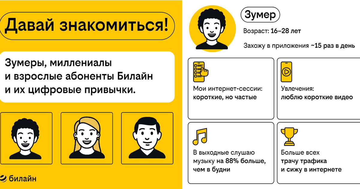 Билайн летом запустил платформу «план б.» с безлимитом на социальные сети, мессенджеры, музыку и видео. На основе обезличенных данных оператор узнал, как эти приложения используются у разных поколений по будним и выходным дням.