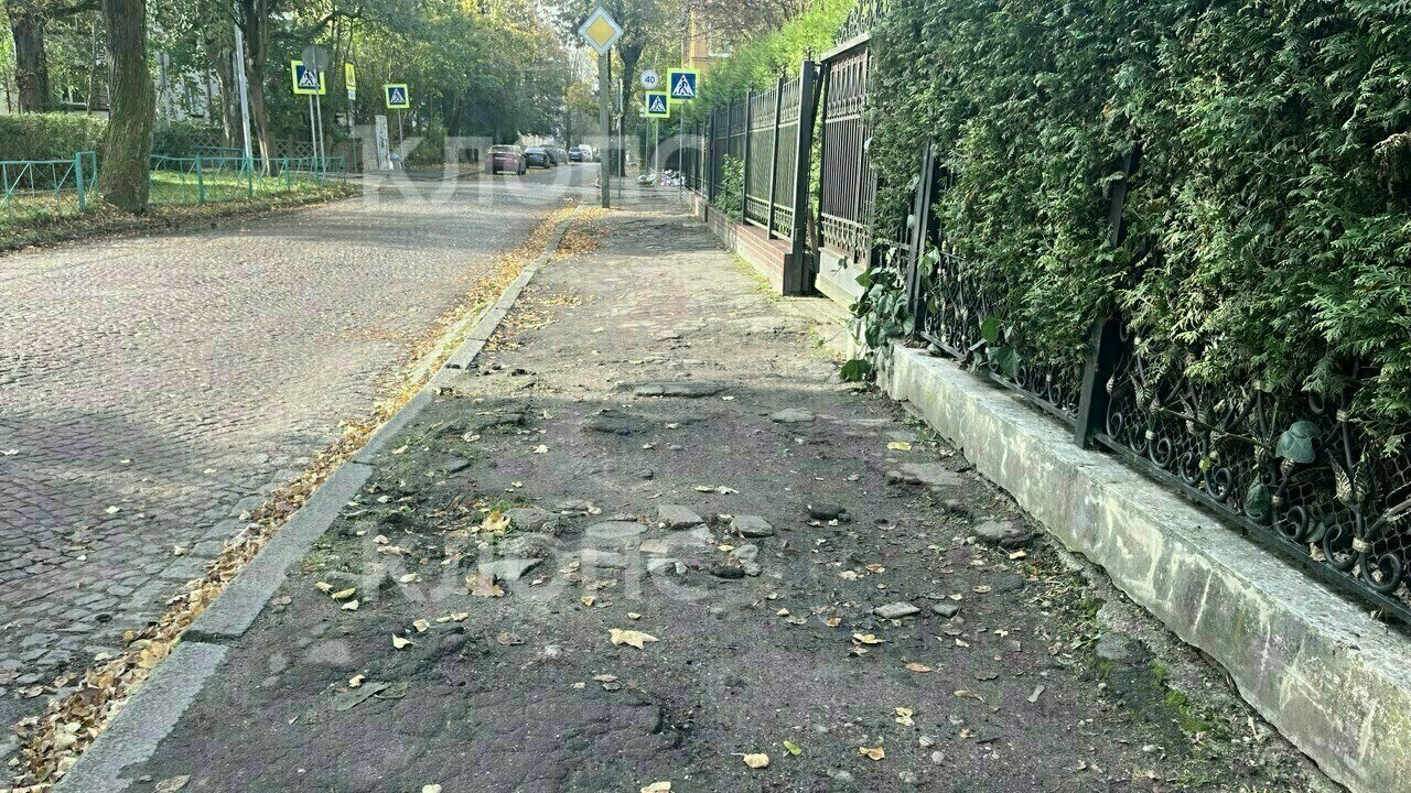 Бросаются в глаза ведущие к гимназии тротуары. Со стороны Коммунальной они как после бомбёжки: повсюду выбоины.